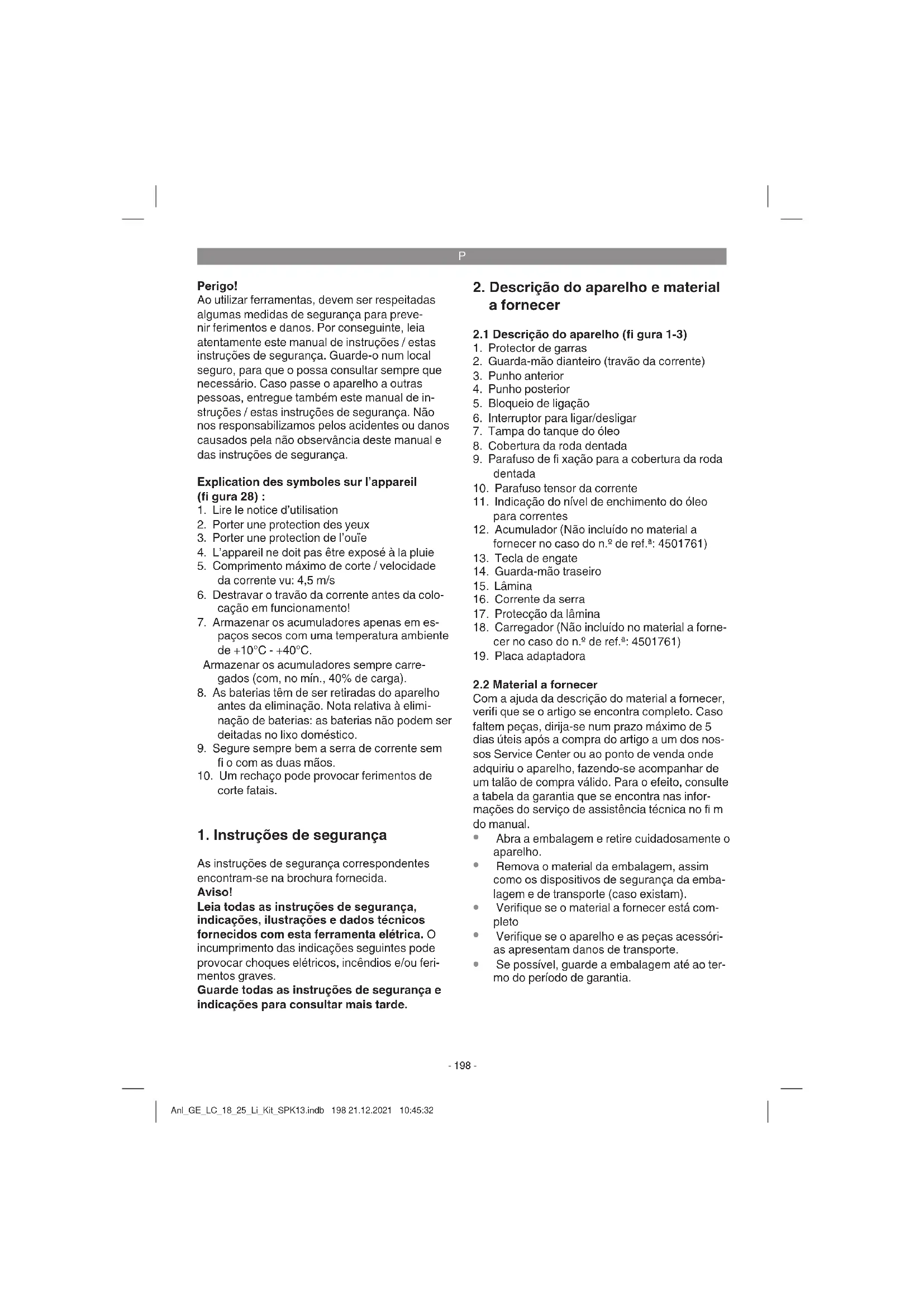 Se possível, guarde a embalagem até ao ter- mo do período de garantia. Anl_GE_LC_18_25_Li_Kit_SPK13.indb 198 21.12.2021 10:45:32P