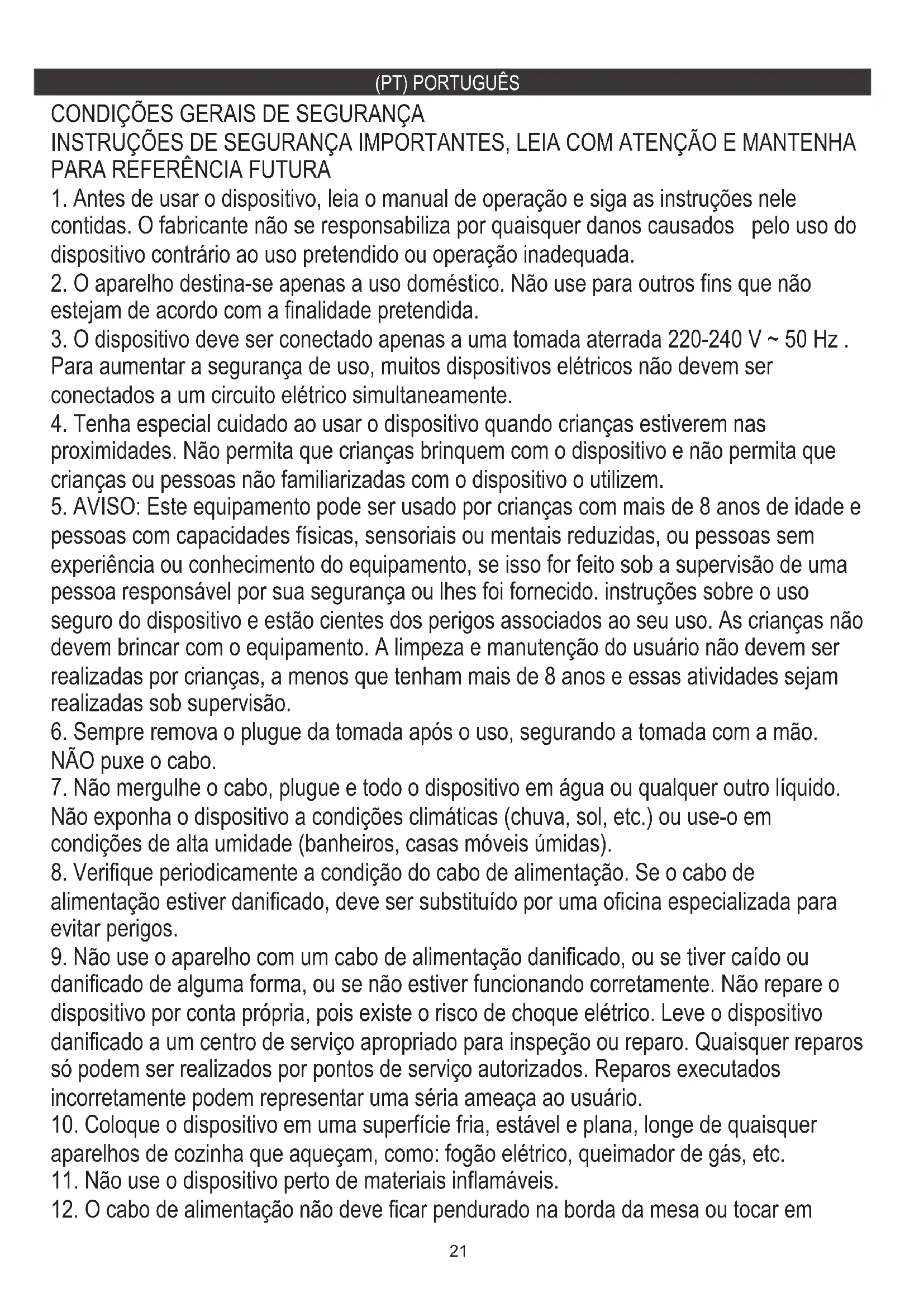 21. Após o uso e o aquecedor do dispositivo esfriar, é recomendável desmontar e lavar