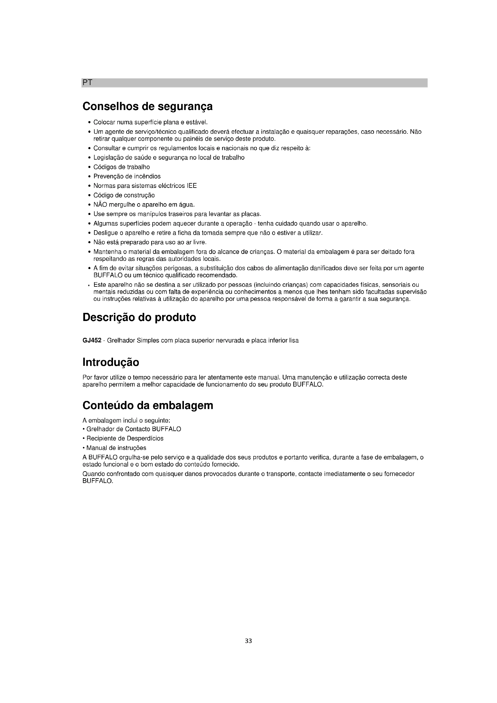 Encontre gratuitamente o manual do aparelho GJ452 BUFFALO em formato PDF.