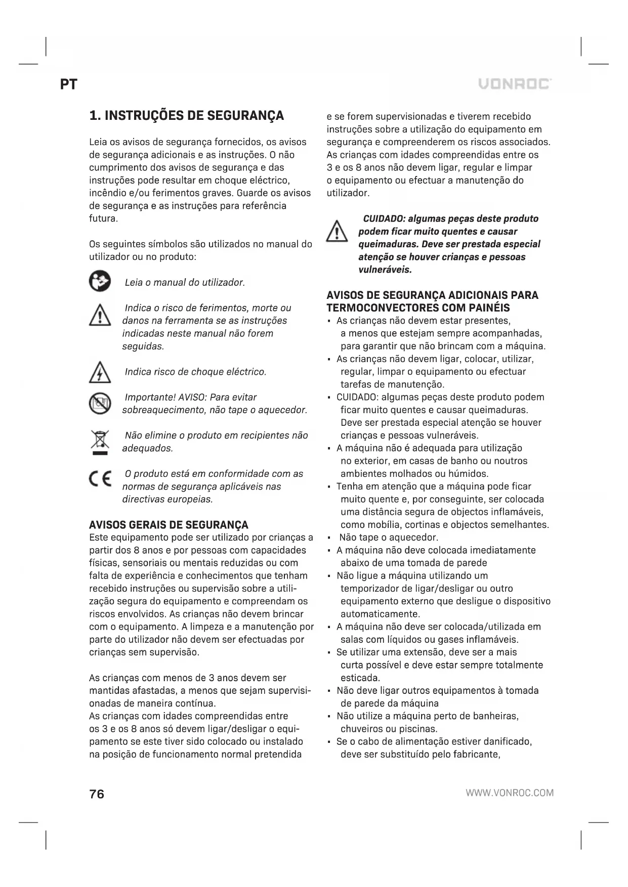 CH514AC - Aquecimento Vonroc - Manual de utilização gratuito