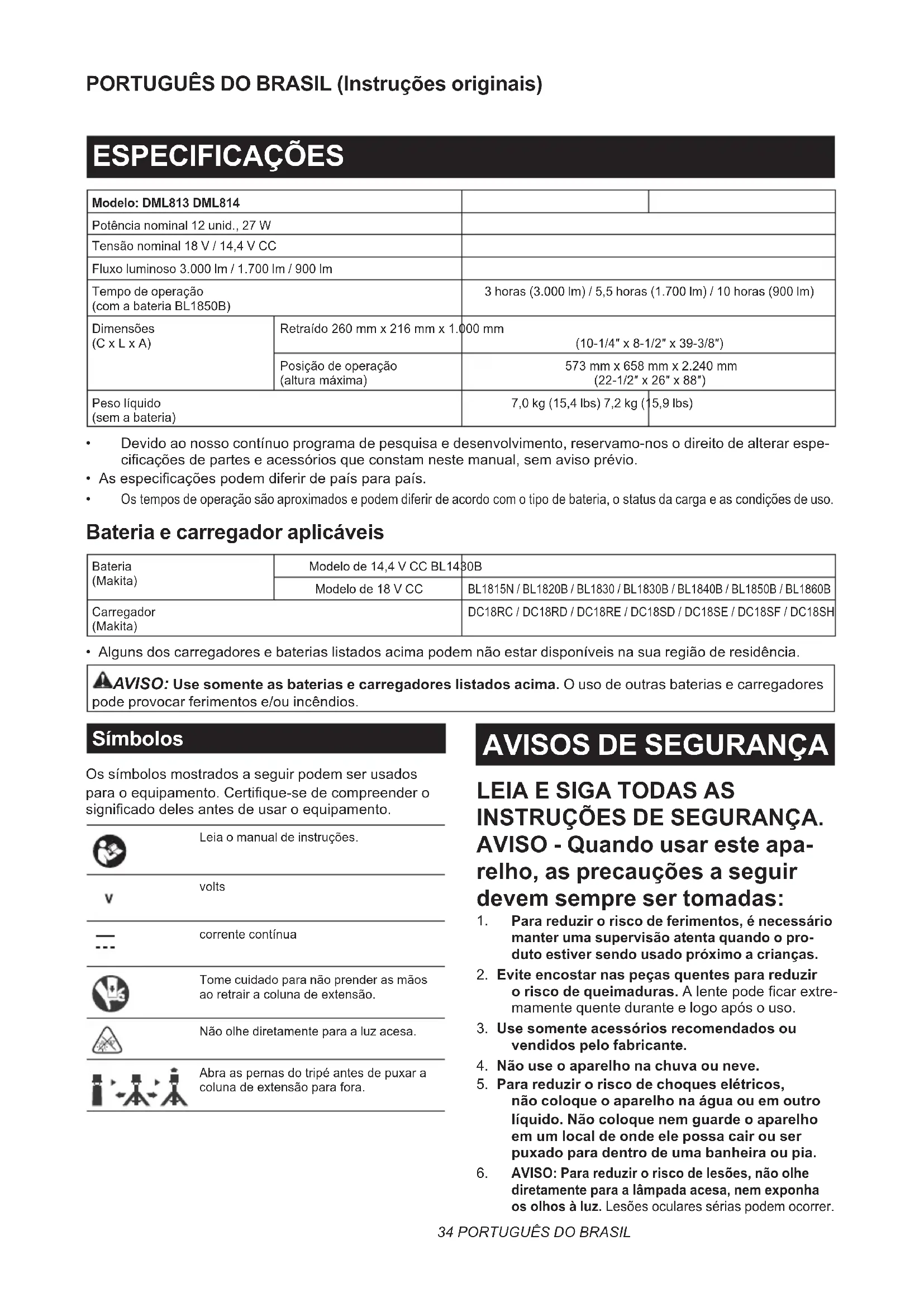 DML813 - Iluminação MAKITA - Manual de utilização gratuito