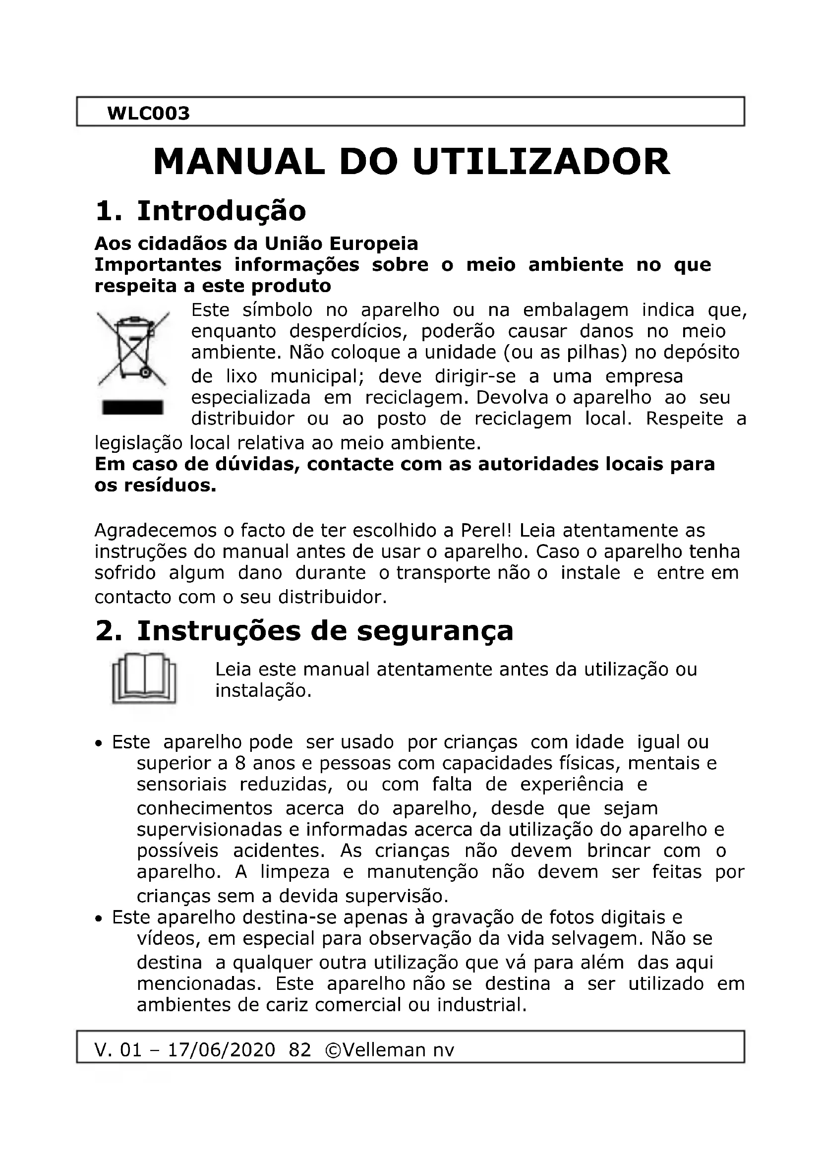 - Este aparelho destino-se apenas à gravação deotos digitais e videotos, em especial para observação da vida selvagem. Não se destina a qualquer outras.krutilização que vá para algoç das aquimentionadas. Este aparelho não se destina a ser realizado em ambientes de cariz comercial ou industrial.