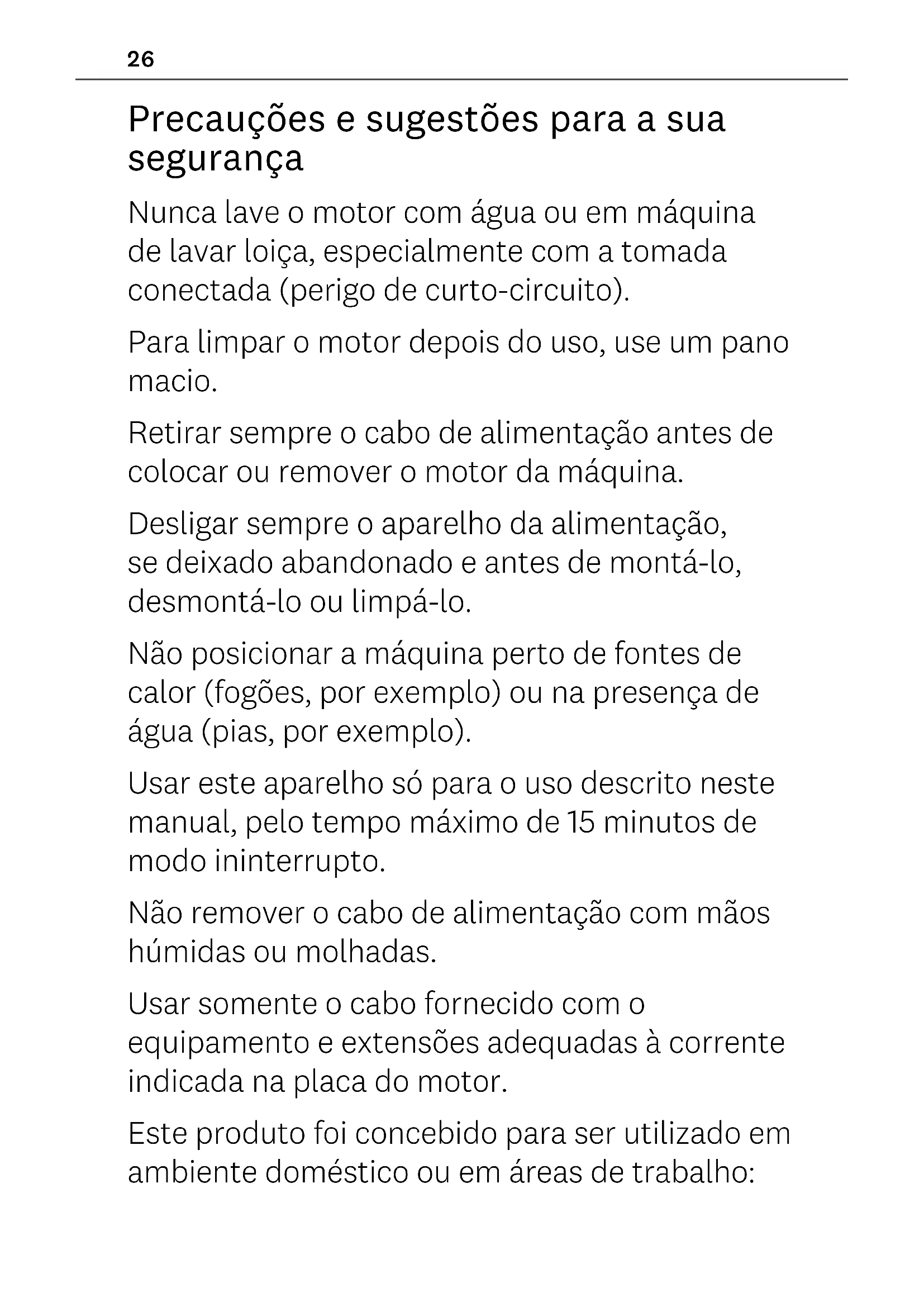 - Manual de instrucciones Cómo conectar el motor a las máquinas Marcato Acerque el motor a la máquina inclinándolo hacia arriba unos 30° introduciendo el perno en el orificio de los rodillos (Fig. 1 ). Presione el motor hasta que se apoye en el lado. Por último, gírelo hacia abajo unos 30° hasta que esté completamente estable. Antes de conectar el cable de alimentación, asegúrese de que la tensión de alimentación se ajuste a la reflejada en la placa del motor (Fig. 2 ). Para arrancar el motor, presione el interruptor de la posición I (Fig. 3 - 4 ). Para utilizar el motor por intermitencia, presione el pulsador hasta situarlo en la posición II (PULSE). Para extraer el motor de la máquina, gírelo hacia arriba unos 30° y tire del mismo hacia el exterior (Fig. 5 ). ESPAÑOL Garantía Los productos de Marcato se fabrican con los mejores materiales disponibles y se someten a continuos controles de calidad. Por este motivo, garantizamos asistencia durante 2 años contra defectos de fabricación. La garantía, sin embargo, no cubre daños causados por un uso inadecuado o diferente del indicado en este manual. Para más información o recetas, visite www.marcato.it o escriba a info@marcato.it Descargue esta información en www.marcato.it26 Precauções e sugestões para a sua segurança Nunca lave o motor com água ou em máquina de lavar loiça, especialmente com a tomada conectada (perigo de curto-circuito). Para limpar o motor depois do uso, use um pano macio. Retirar sempre o cabo de alimentação antes de colocar ou remover o motor da máquina. Desligar sempre o aparelho da alimentação, se deixado abandonado e antes de montá-lo, desmontá-lo ou limpá-lo. Não posicionar a máquina perto de fontes de calor (fogões, por exemplo) ou na presença de água (pias, por exemplo). Usar este aparelho só para o uso descrito neste manual, pelo tempo máximo de 15 minutos de modo ininterrupto. Não remover o cabo de alimentação com mãos húmidas ou molhadas. Usar somente o cabo fornecido com o equipamento e extensões adequadas à corrente indicada na placa do motor. Este produto foi concebido para ser utilizado em ambiente doméstico ou em áreas de trabalho:27PORTUGUÊS áreas equipadas como cozinha dentro de lojas, escritórios e outros locais de trabalho, hotéis e outras estruturas turísticas, cozinhas de restaurantes. Durante o trabalho com máquina dotadas de motores, não usar gravatas, cachecóis ou colares compridos. Além disso, lembrar-se sempre de recolher os cabelos. As operações de limpeza e manutenção não podem ser feitas por crianças sem a supervisão de um adulto. Todas as reparações que envolvem componentes elétricos devem ser feitas por pessoal qualificado. É proibido o acesso às partes internas do motor ao pessoal não autorizado. ATENÇÃO! Este aparelho pode ser utilizado por crianças com idades superiores a 8 anos se forem supervisionadas ou se receberam instruções sobre a utilização do aparelho em segurança e se compreenderam os perigos inerentes. As operações de limpeza e manutenção efetuadas por parte do utilizador não devem ser efetuadas por crianças, a menos que não tenham uma28 idade superior aos 8 anos e operem sob vigilância. Manter o aparelho e o seu cabo fora do alcance das crianças com idade inferior aos 8 anos. Os aparelhos podem ser usados por pessoas com capacidades físicas, sensoriais ou mentais reduzidas ou com falta de experiência e conhecimento desde que sejam supervisionadas ou se tiverem recebido instruções sobre o uso do aparelho em condições de segurança e se compreenderam os perigos inerentes. As crianças não devem utilizar o aparelho como brinquedo. A presença de um contentor móvel com barras sinaliza que no interior da União Europeia o produto é sujeito a uma recolha especial no final do ciclo de vida. Não eliminar estes produtos nos resíduos urbanos indiferenciados.29 Material no interior da embalagem