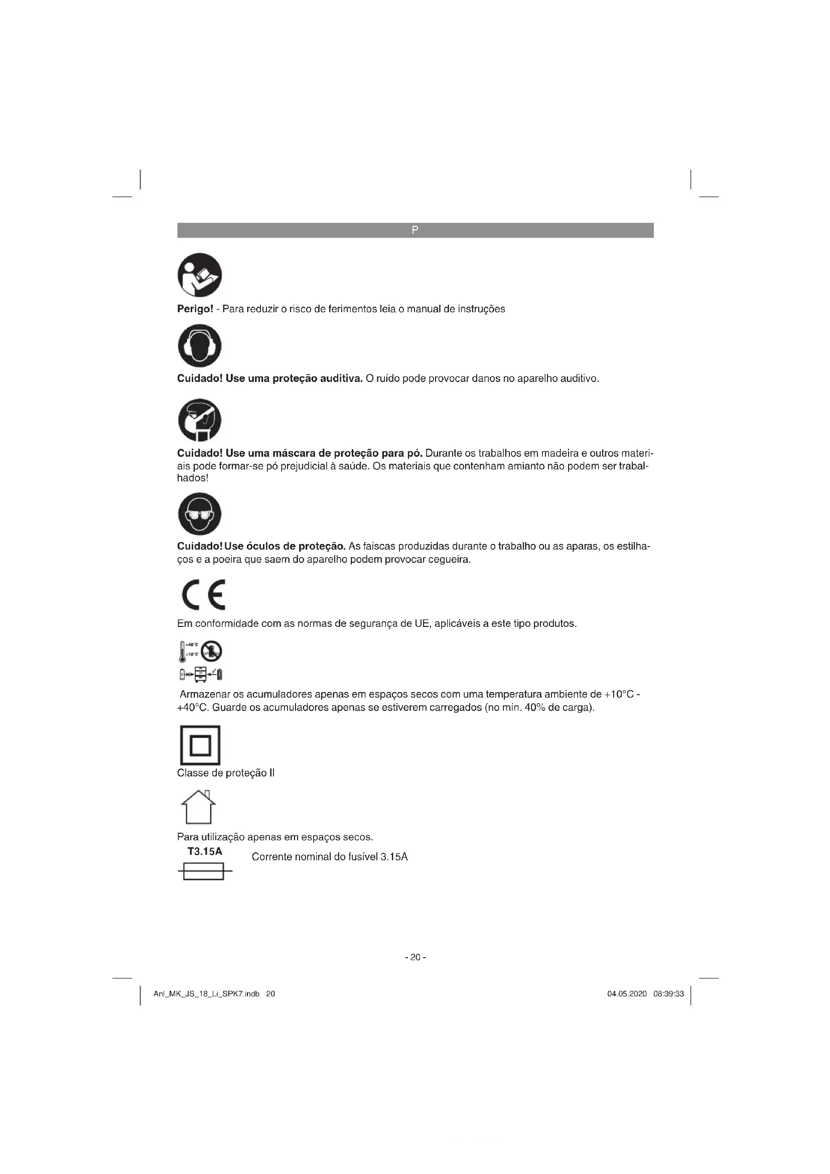 Ao utilizar ferramentas, devem ser respeitadas algumas medidas de segurança para prevenir ferimentos e danos. Por conseguinte, leia atentamente este manual de instruções / estas instruções de segurança. G