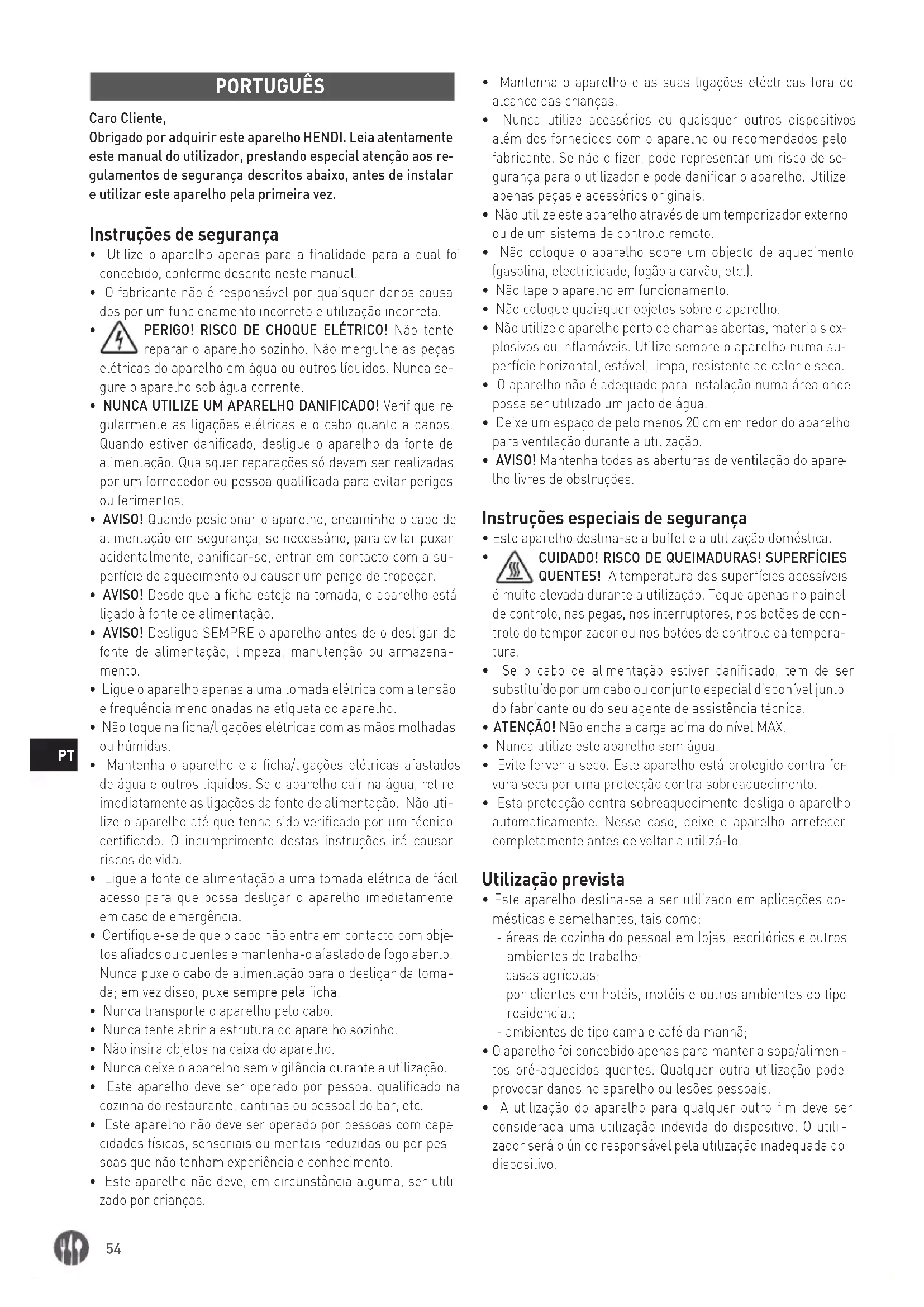 PORTUGUÊS Caro Cliente, Obrigado por adquirir este aparelho HENDI. Leia atentamente este manual do utilizador, prestando especial atenção aos re
