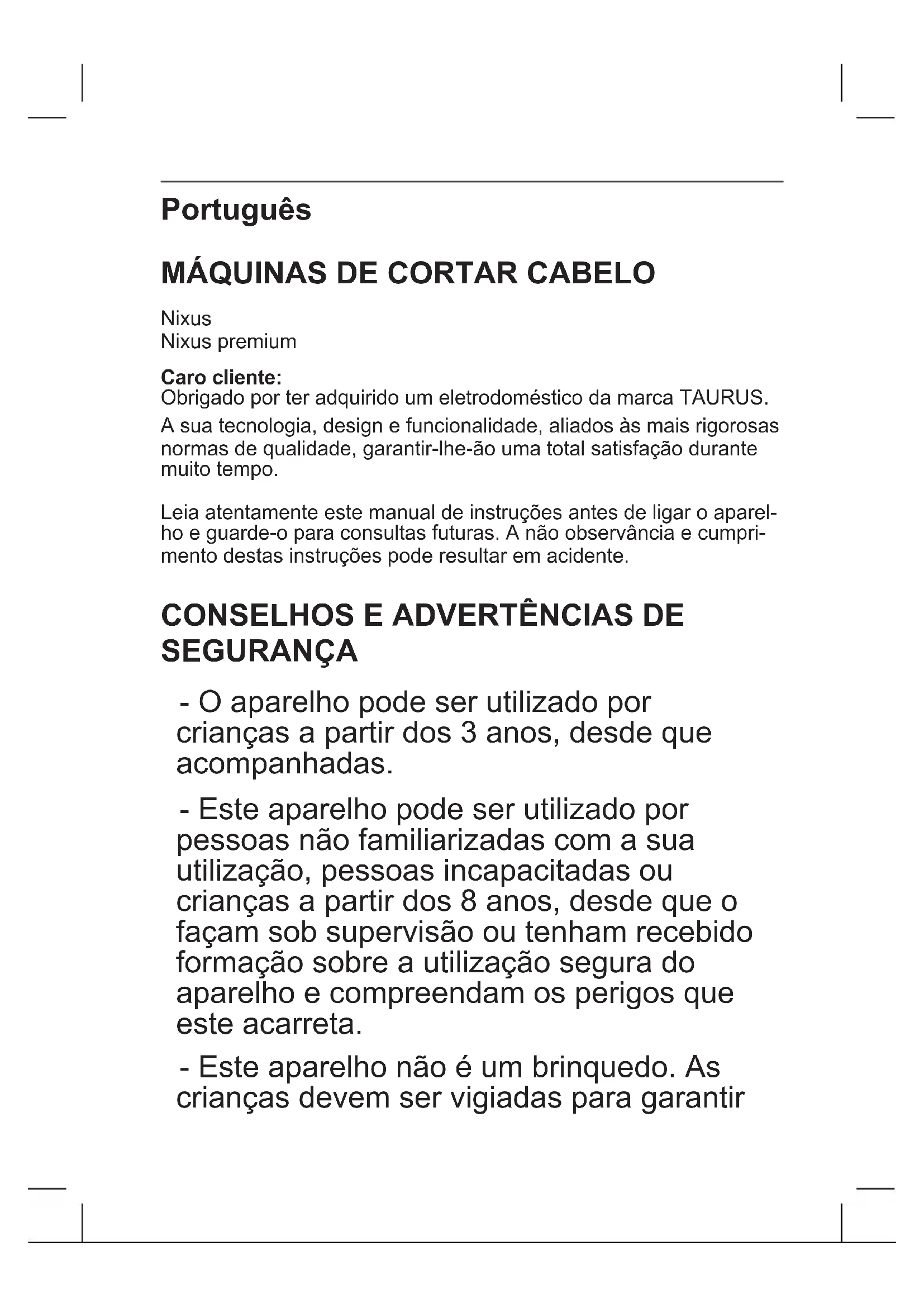 Nixus Premium - Aparador de barba TAURUS - Manual de utilização gratuito