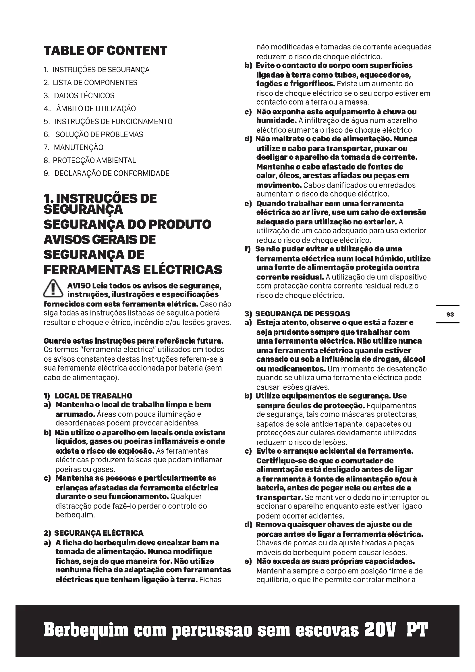 1) Instruções de segurança para todas as