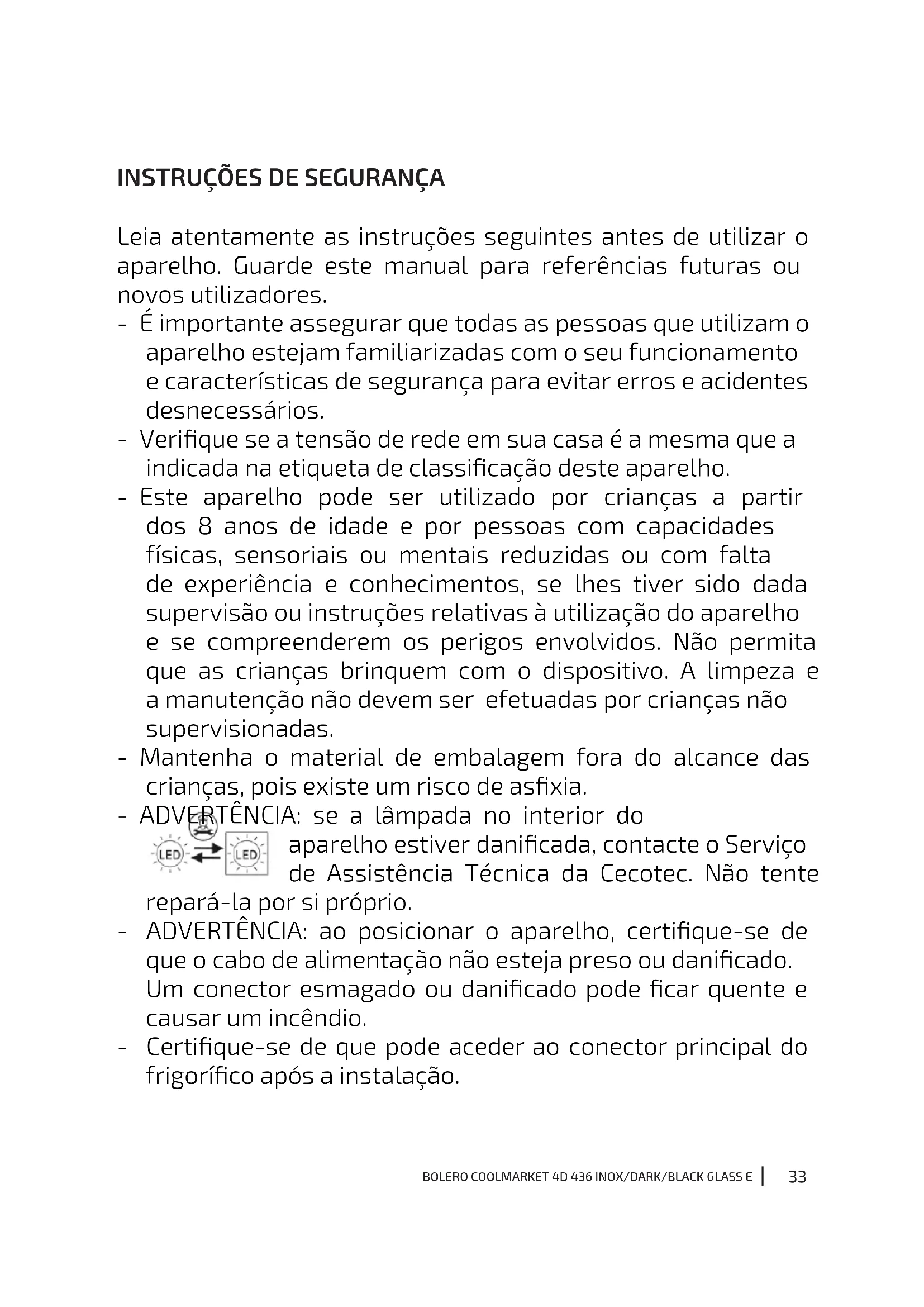 MANUAL DE UTILIZADOR Bolero CoolMarket 4D 436 E CECOTEC