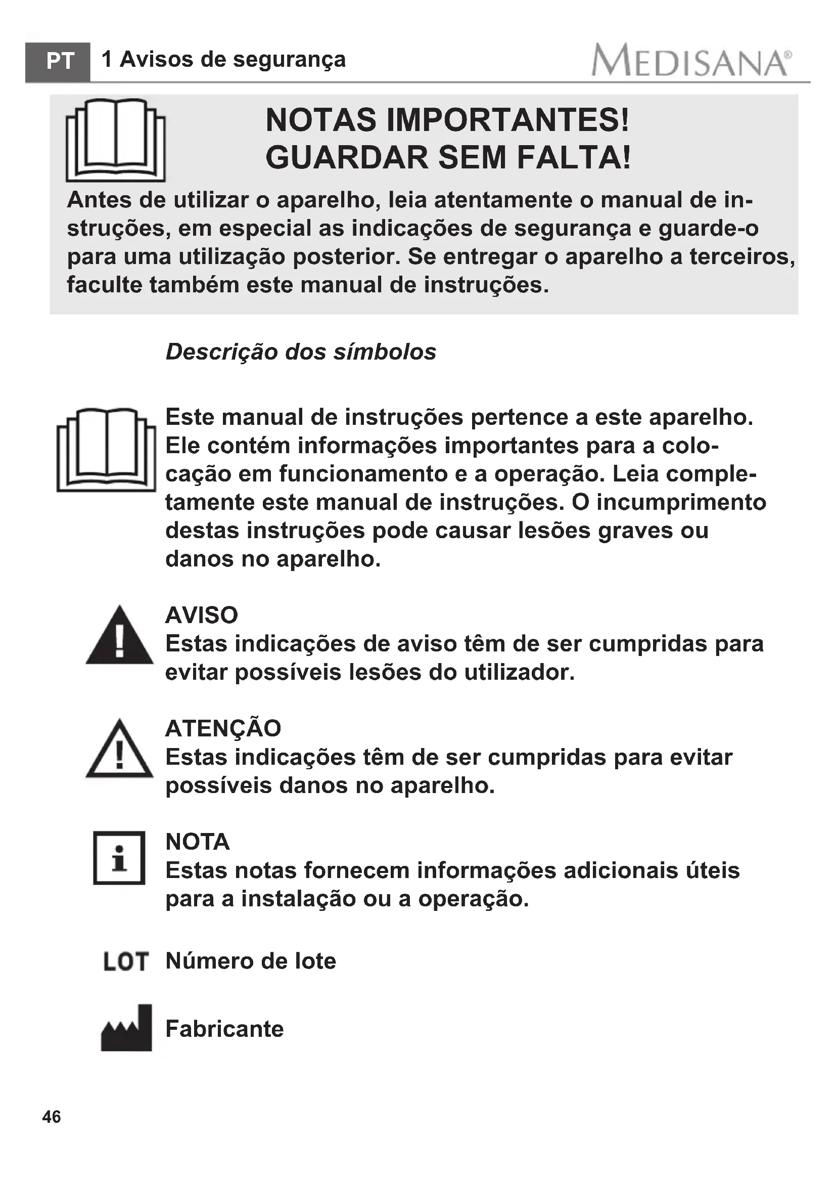 - Aos produits MEDISANA concedemos uma garantia de这只是 anos a partir da data de compra. Em caso de garantia, a data de compra tem de ser comprovada através do recibo de compra ou factura.