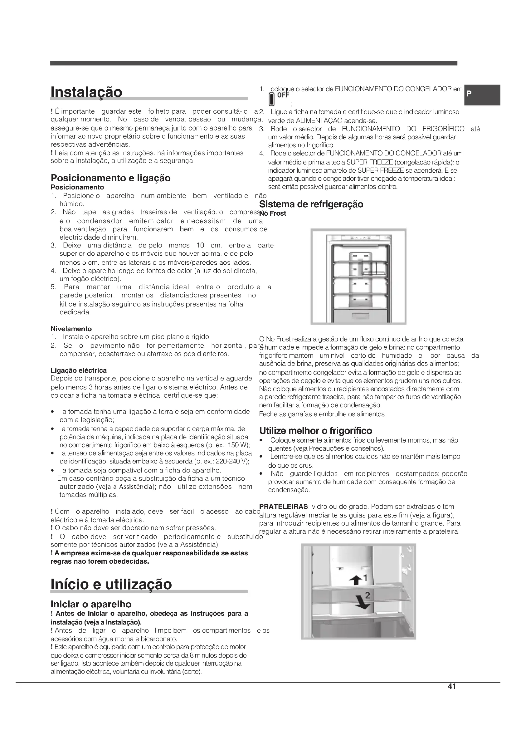 Índice Instruções para a utilização, 2 Assistência, 5 Descrição do aparelho, 9 Descrição do aparelho, 14 Reversibilidade da abertura das portas, 16 Instalação, 41 Início e utilização, 41 Manutenção e cuidados, 42 Precauções e conselhos, 43 Anomalias e soluções, 44 Polski Instrukcja obsługi