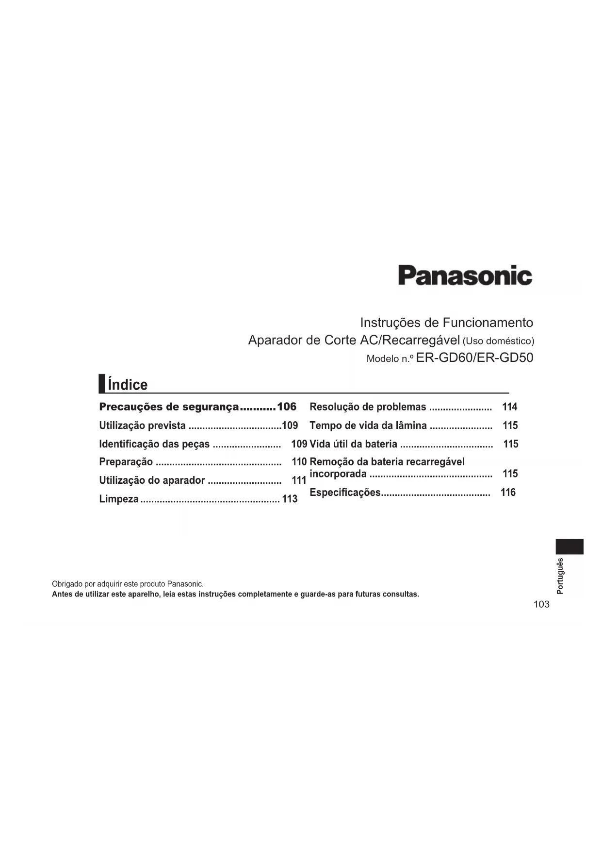Encontre gratuitamente o manual do aparelho ERGD50 PANASONIC em formato PDF.