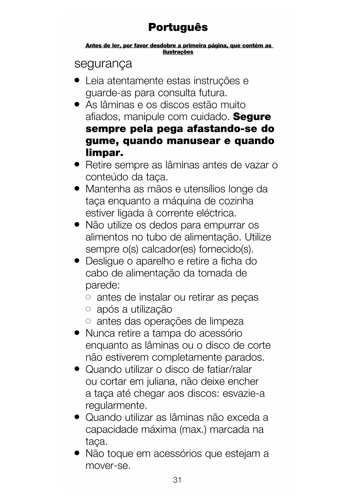 Antes de ler, por favor desdobre a primeira página, que contém as ilustrações Portuguêsl