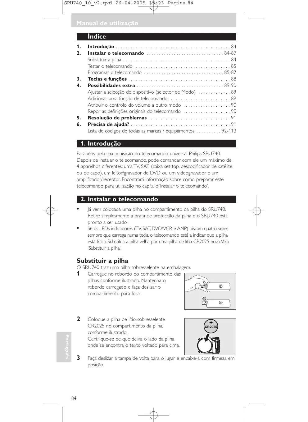 SRU740_10_v2.qxd 26-04-2005 15:23 Pagina 84 Manual de utilização Manual de utilização Índice