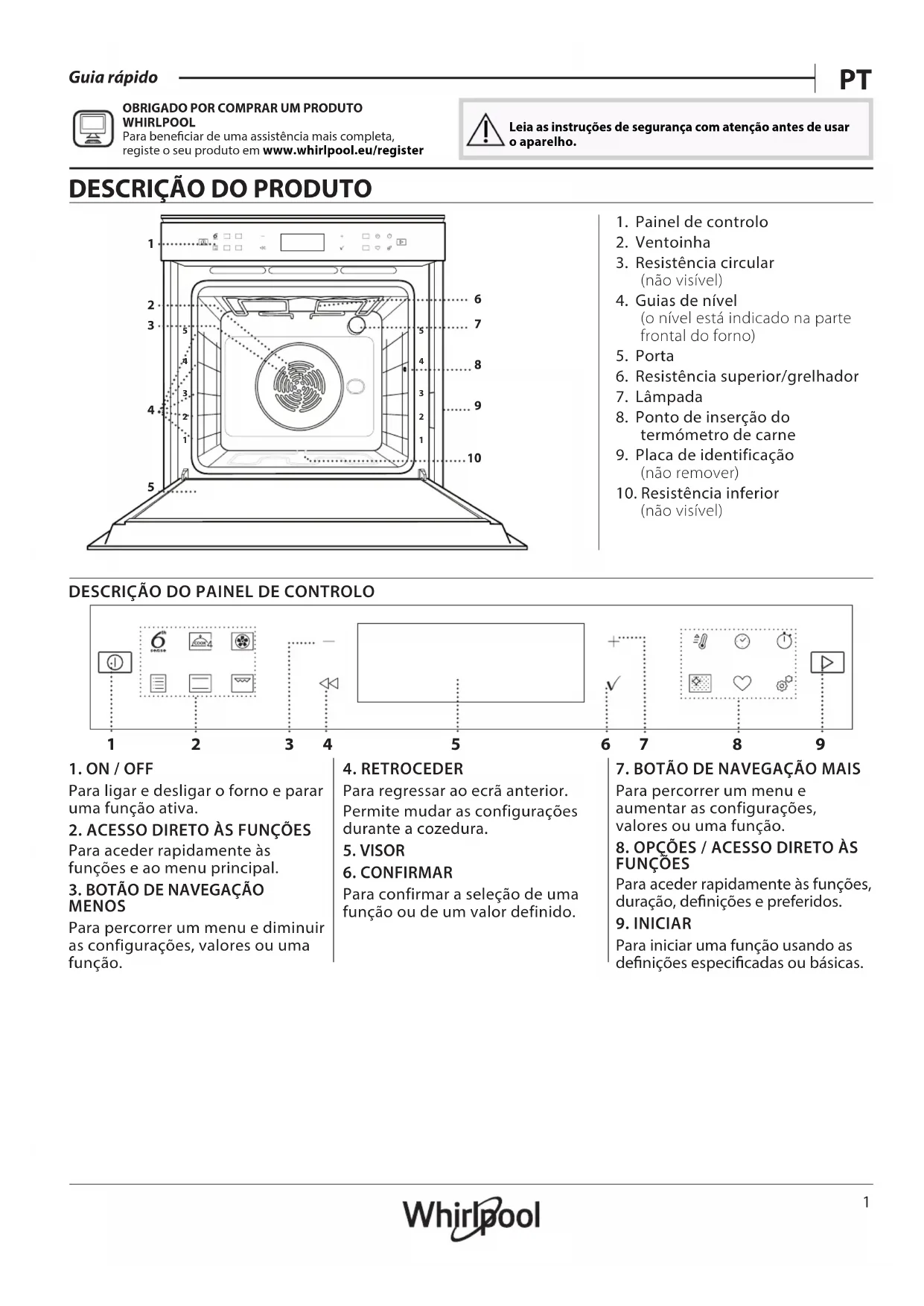 WHIRLPOOL Para beneciar de uma assistência mais completa, registe o seu produto em www . whirlpool . eu/ register Leia as instruções de segurança com atenção antes de usar o aparelho.