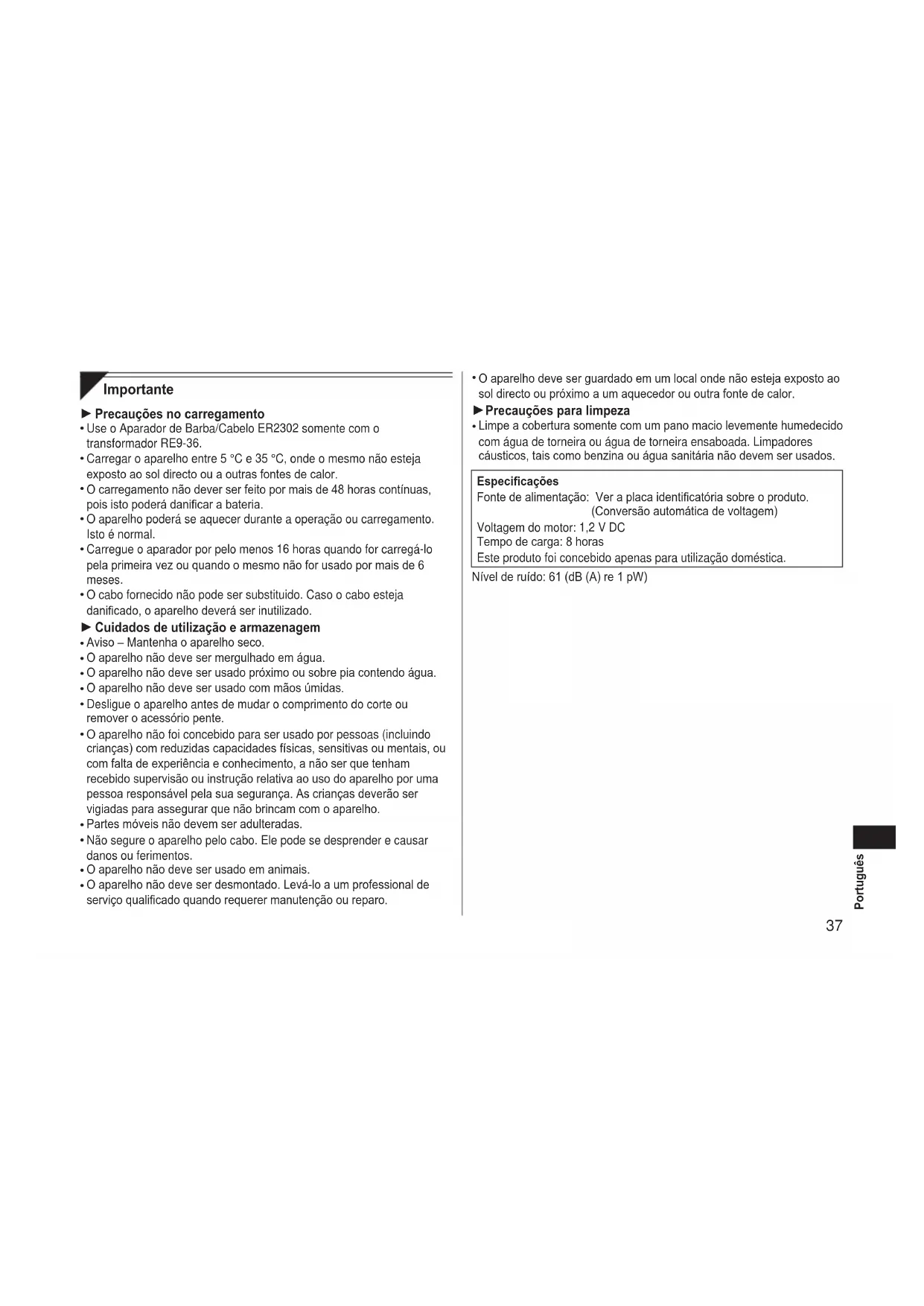 - Use o Aparador de Barba/Cabelo ER2302 somente com o transformador RE9-36.