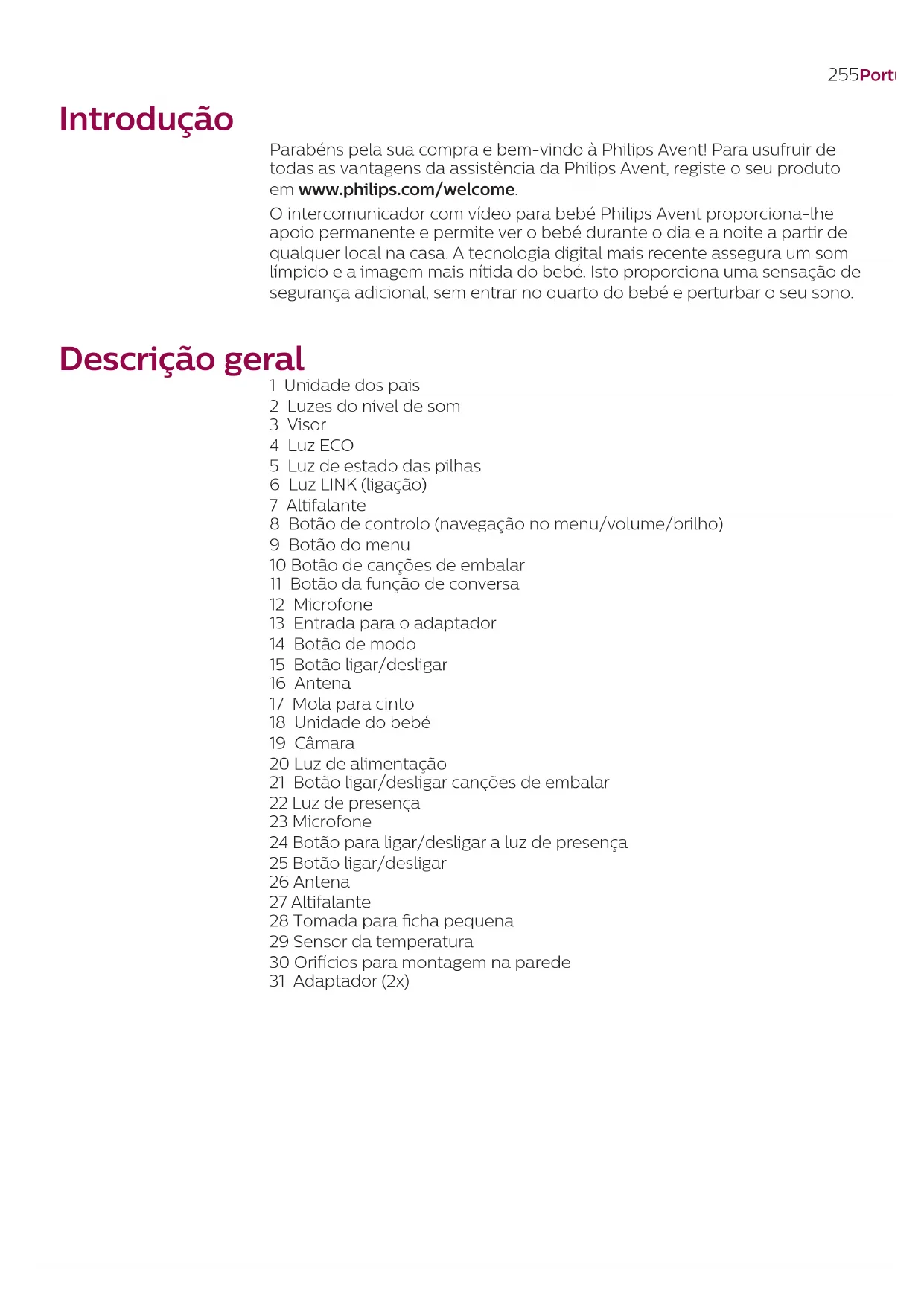 Tenha em atençao que utilizes este intercomunicador para bebe por sua conta e risco. Koninklijke Philips N.V. e as suas entreprises subsidiaries não são responsaveis pelo functiOnamento deeste intercomunicador para bebe nemPGA suautilizaçãodo mesmoe,consequentemente,nao aceitam qualquer responsabilitadelelacionada comautilizaçãodeste intercomunicador para bebe por parte do Utilizador.