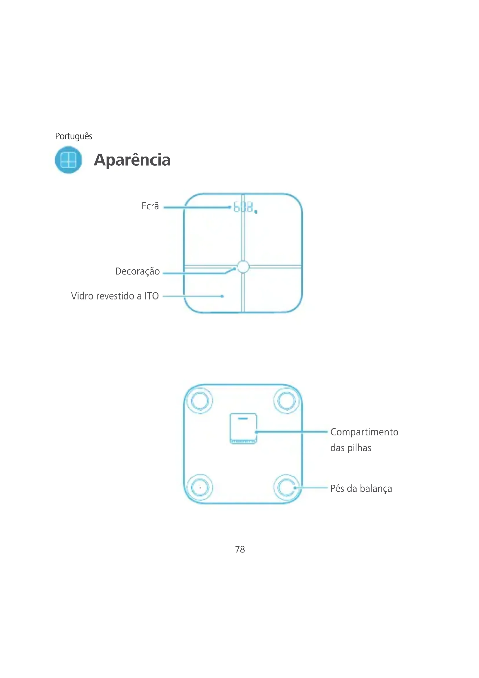 Aparência Ecrã Decoração Pés da balança