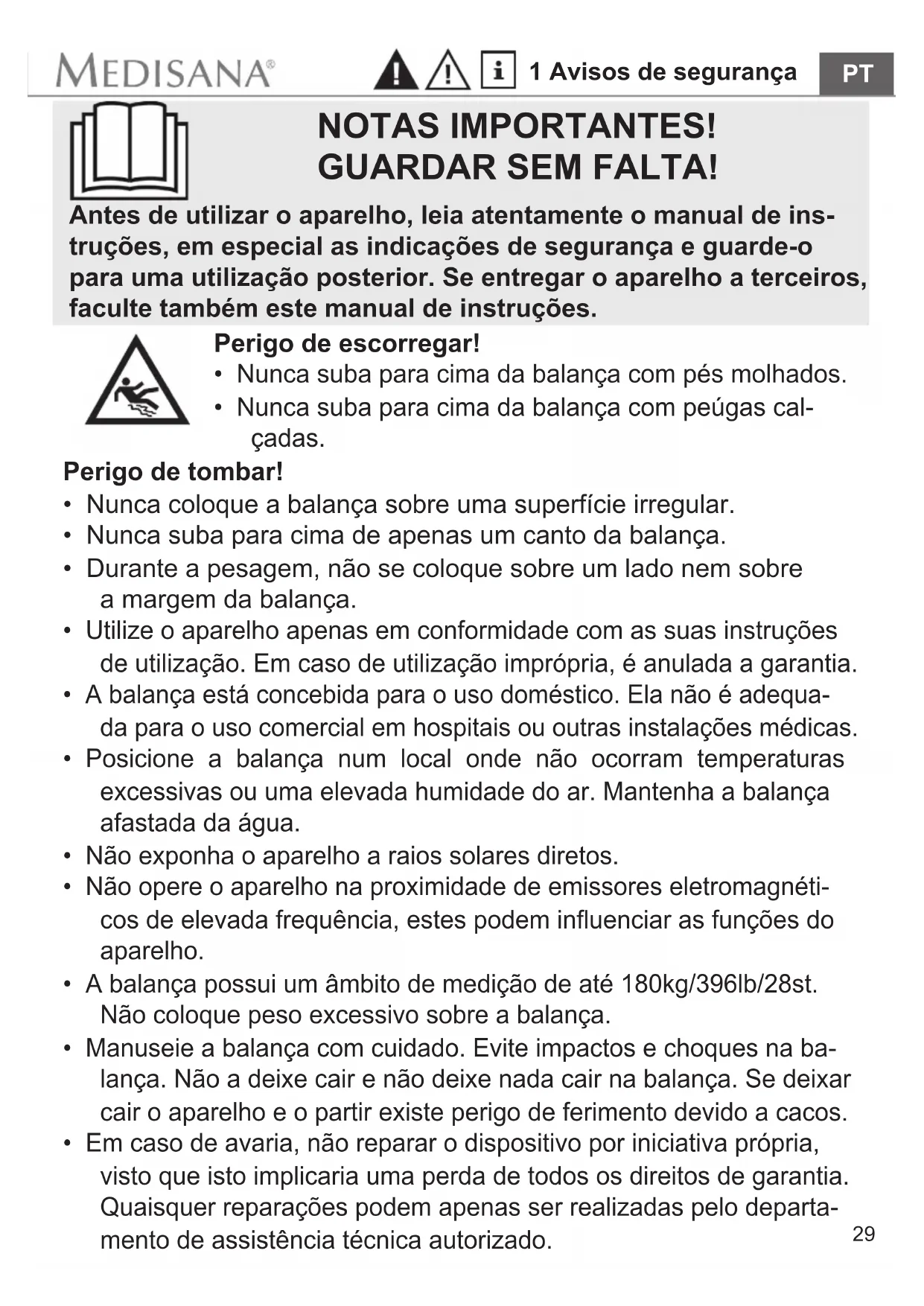 - Durante a pesagem, não se coloque sobre um lado nem sobre a margem da balança.30 1 Avisos de segurança