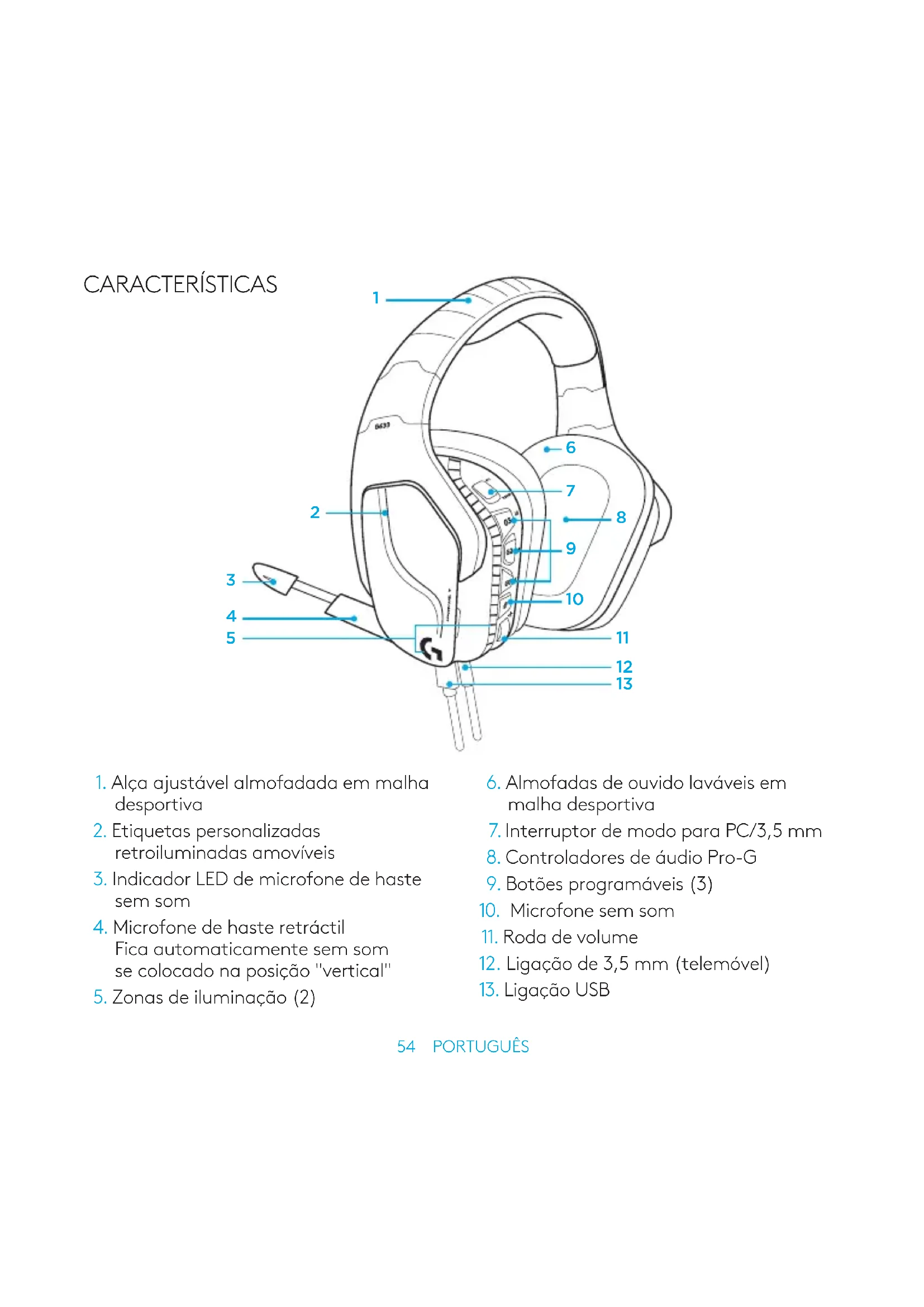 G635 - Capacete LOGITECH - Manual de utilização gratuito