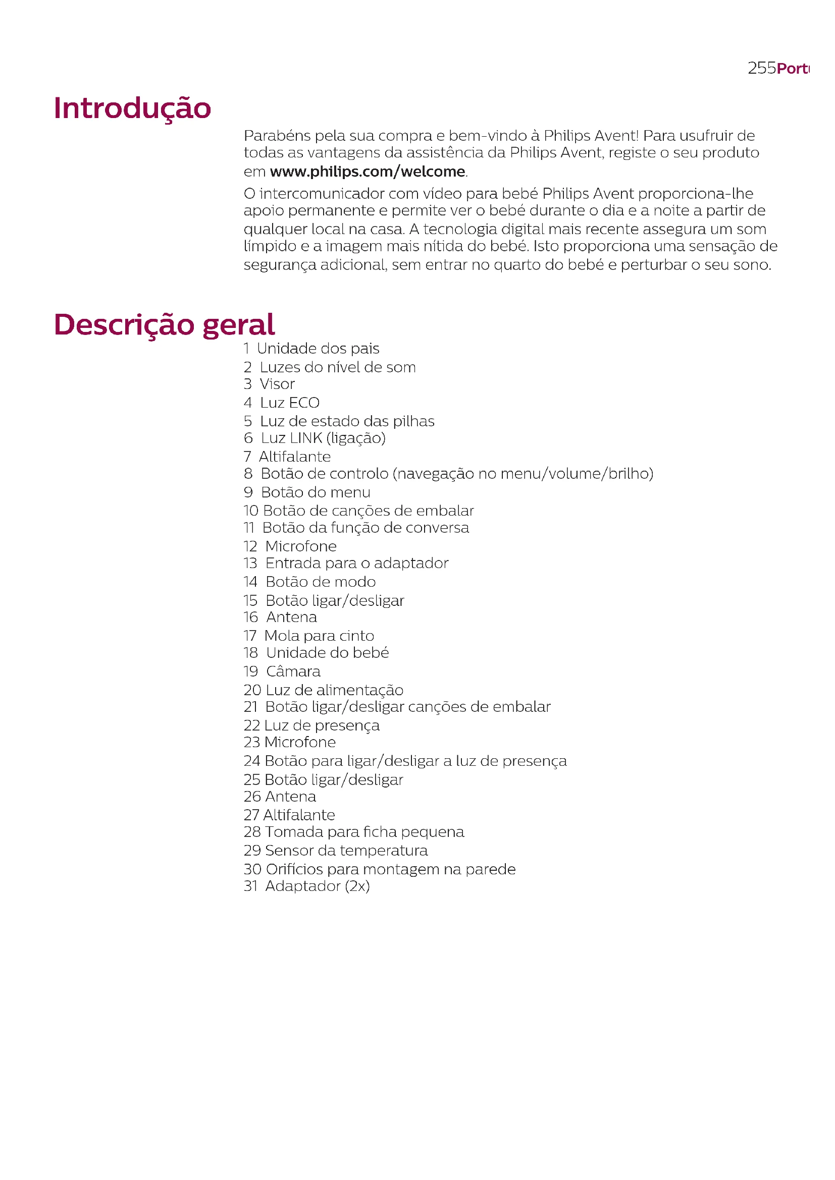 Tenha em atençao que utilizes este intercomunicador para bebé por sua conta e risco. Koninklijke Philips N.V. e as suas entreprises subsidiaries não são responsaveis pelo functiOnamento deeste intercomunicador para bebé nemPGA suautilizaçãodo mesmoe,consequentemente,nao aceitam qualquer responsabilitadelelacionada comautilizaçãodeste intercomunicador para bebé por parte doutilizador.