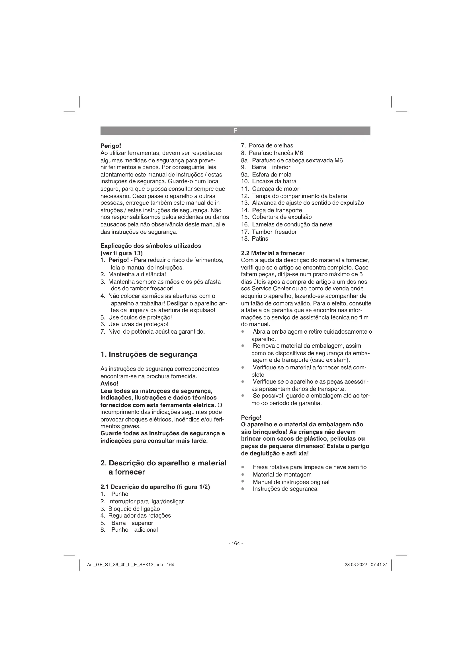 disposição o talão ou outro comprovativo de compra do aparelho novo. Os aparelhos enviados sem o respectivo comprovativo ou sem a placa de características, serão excluídos pelo serviço de ga- rantia devido à falta de atribuição. Se o defeito do aparelho estiver abrangido pelo nosso serviço de garantia, ser-lhe-á imediatamente enviado um aparelho novo ou reparado. Naturalmente, também teremos todo o gosto em efectuar reparações que não estão, ou deixaram de estar, abrangidas pelo serviço de garantia. Nesse caso, terá de suportar os custos da reparação. Para este efeito, deverá enviar o aparelho para a morada do nosso serviço de assistência técnica. Para peças de desgaste, consumíveis e em falta, consulte as restrições desta garantia, de acordo com as informações do serviço de assistência técnica deste manual de instruções. Anl_GE_ST_36_40_Li_E_SPK13.indb 174Anl_GE_ST_36_40_Li_E_SPK13.indb 174 28.03.2022 07:41:3328.03.2022 07:41:33HR/BIH