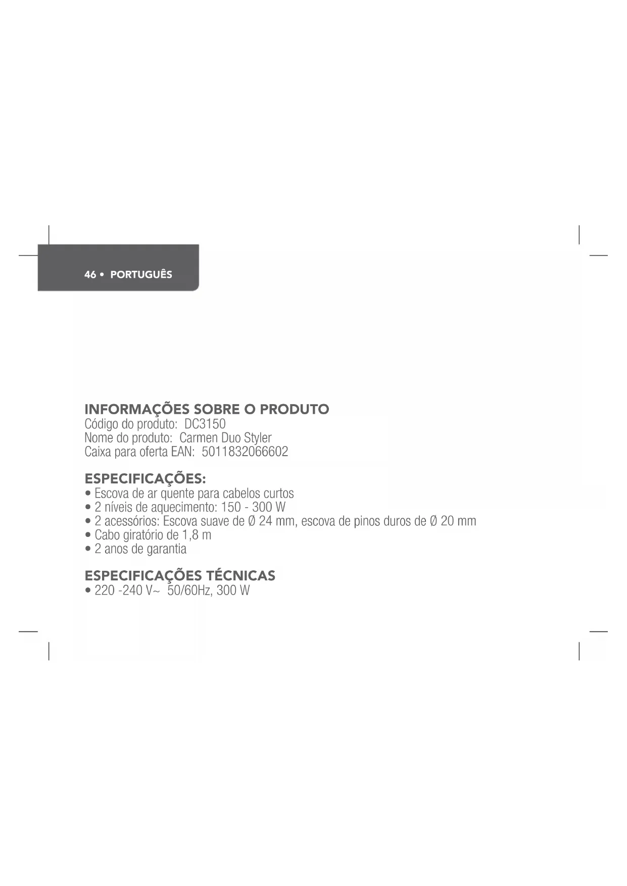 MANUAL DE UTILIZADOR Duo Styler DC3150 Carmen