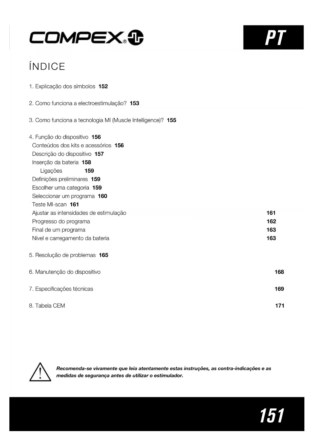 Recomenda-se vivamente que leia atentamente estas instruções, as contra-indicações e as medidas de segurança antes de utilizar o estimulador.152