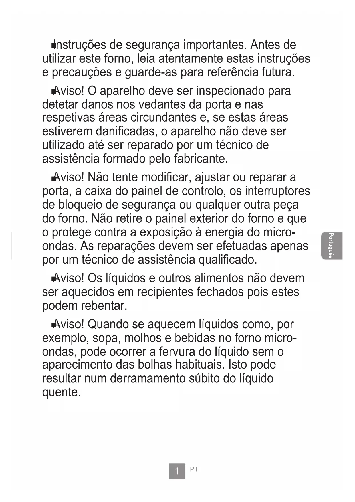 Português Cuidados a ter com o micro-ondas