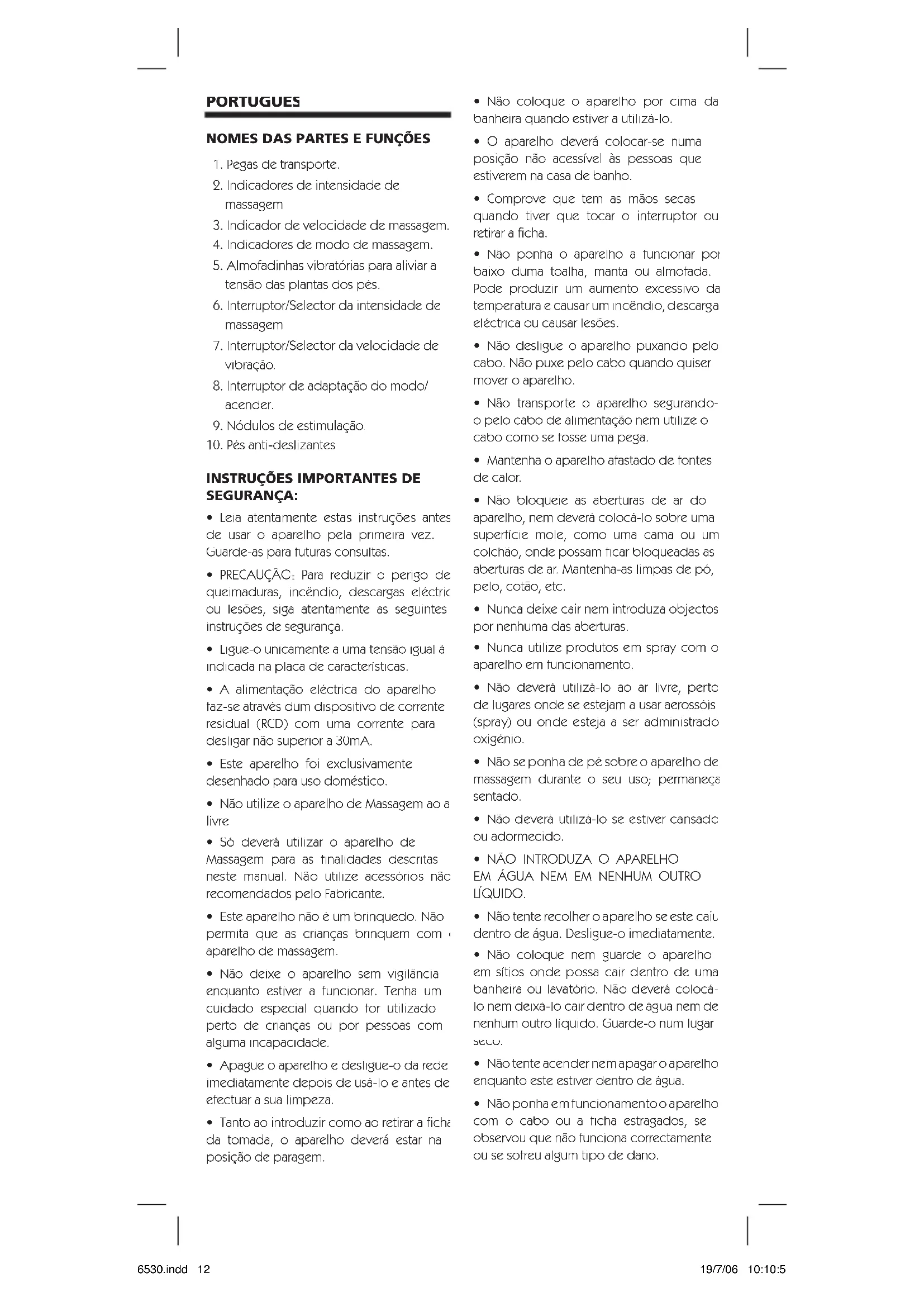 - Este aparelho não é um brinquedo. Não permita que as crianças brinquem com o aparelho de massagem.