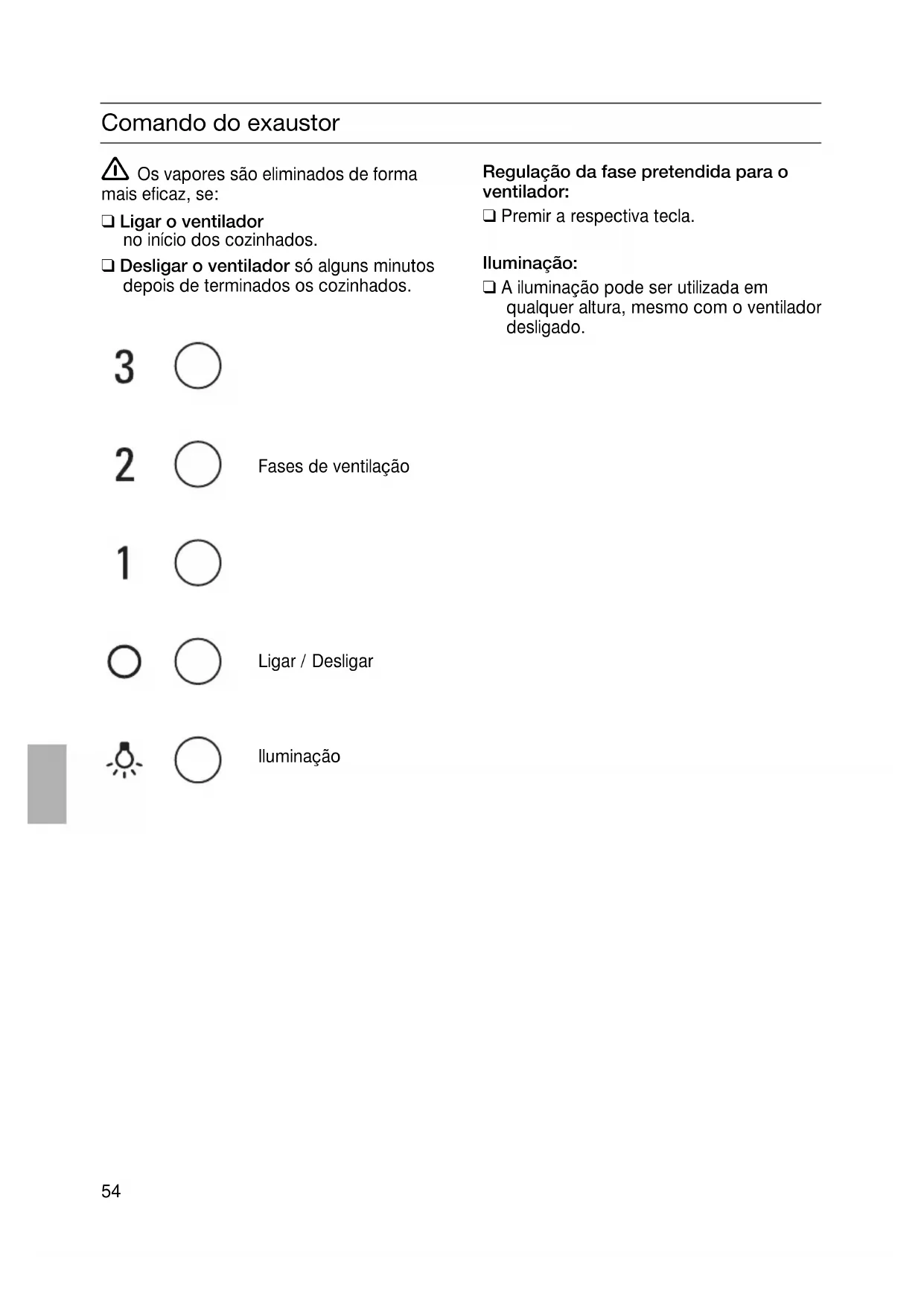 exaustor, desligando a ficha da tomada ou os fusíveis. As lâmpadas de halogéneo ficam muito quentes, quando em funcionamento. Mesmo pouco tempo de depois de ligadas, há perigo de queimaduras.