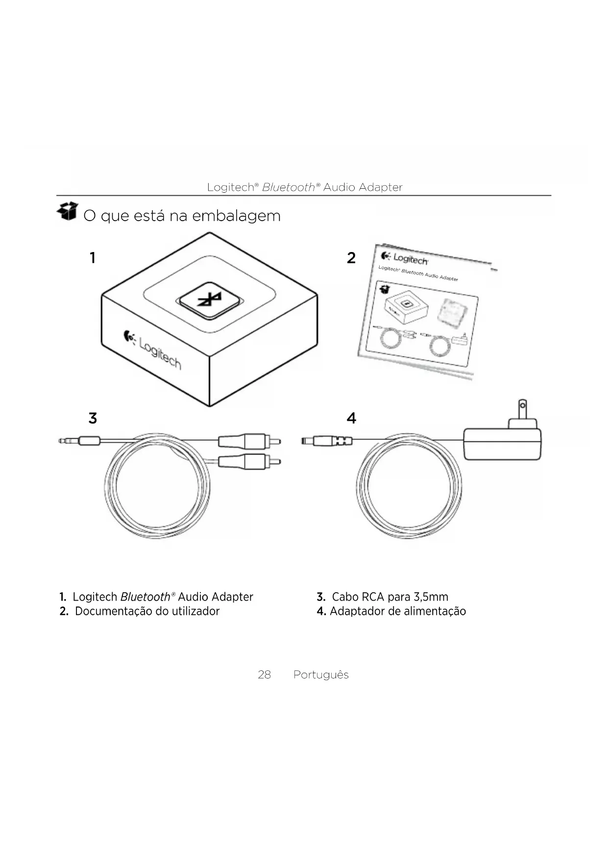 Baixe as instruções para o seu Receptor Bluetooth em formato PDF gratuitamente! Encontre o seu manual Bluetooth Audio Adapter - LOGITECH e retome o controlo do seu dispositivo eletrónico. Nesta página estão publicados todos os documentos necessários para a utilização do seu dispositivo. Bluetooth Audio Adapter da marca LOGITECH.