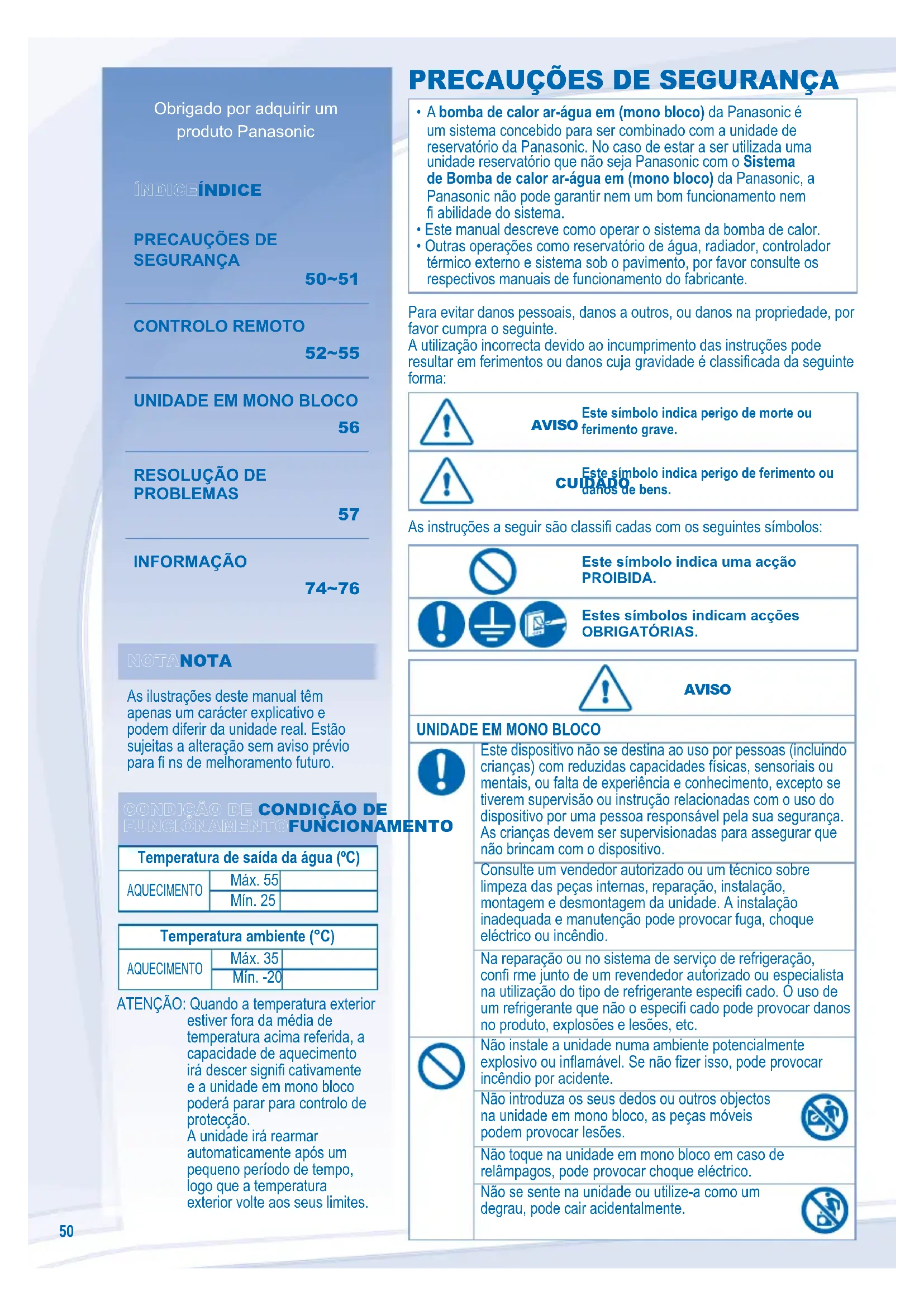 INFORMAÇÃO 74~76 NOTANOTA As ilustrações deste manual têm apenas um carácter explicativo e podem diferir da unidade real. Estão sujeitas a alteração sem aviso prévio para fi ns de melhoramento futuro.