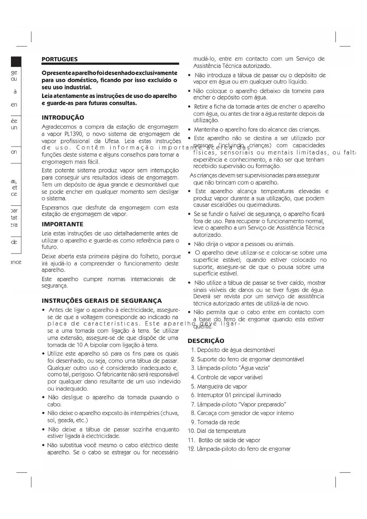PL1390 - Ferro de passar UFESA - Manual de utilização gratuito