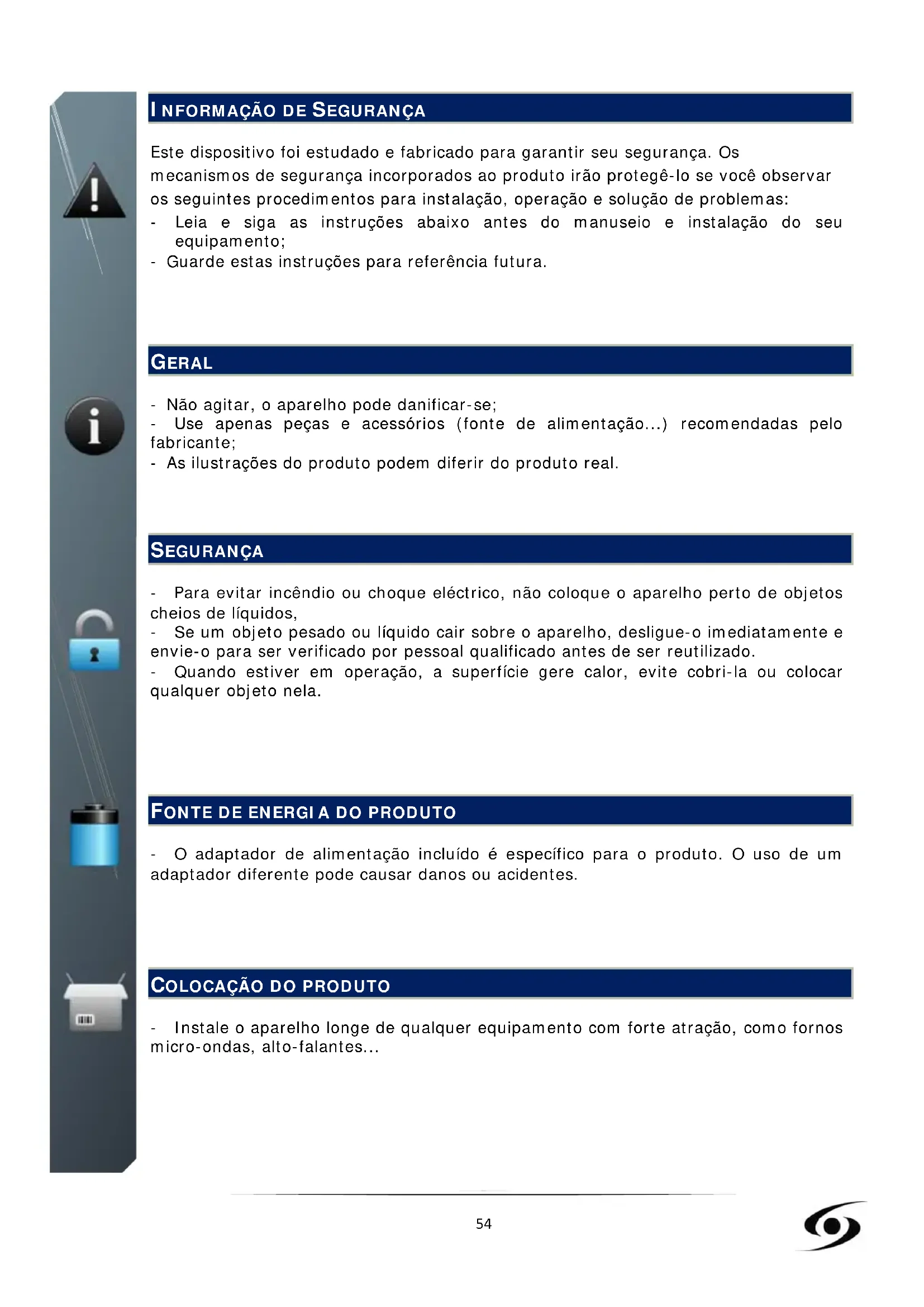 - O adaptador de alimentação incluído é específico para o produto. O uso de um adaptador diferente pode causar danos ou acidentes.