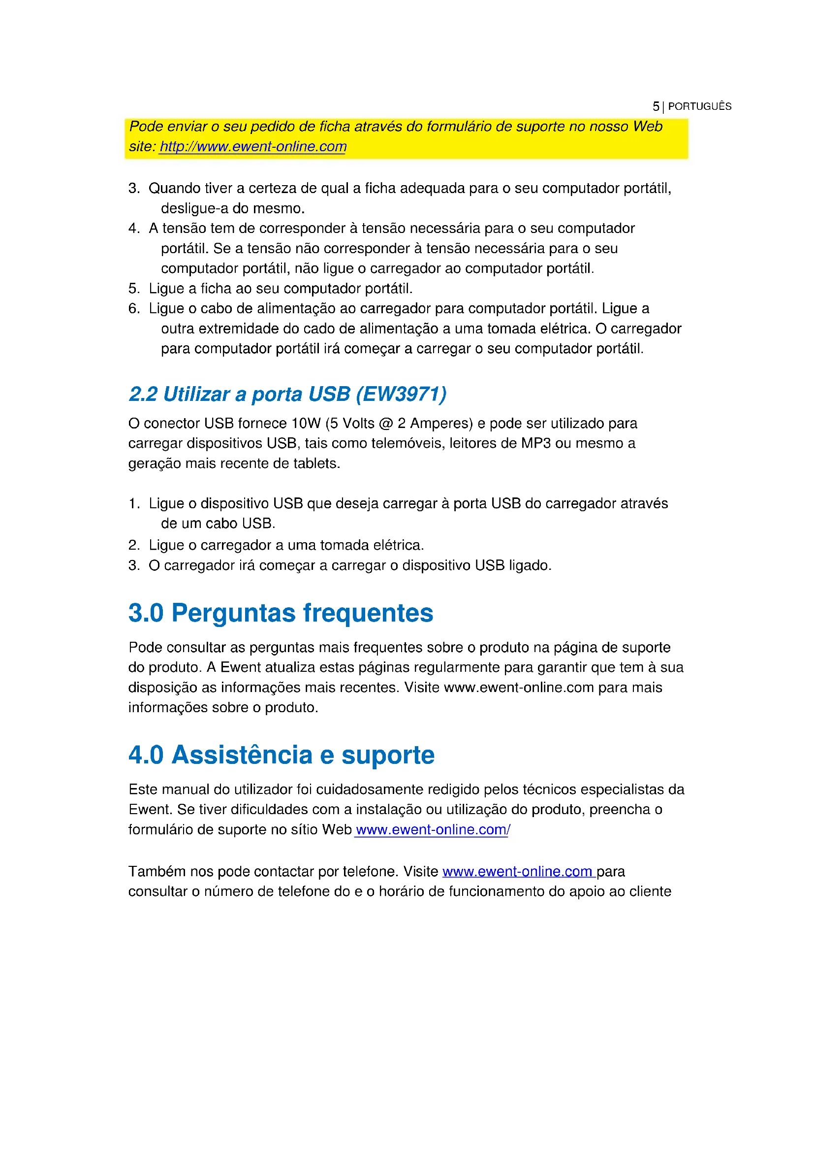 Pode consultar as perguntas mais frequentes sobre o produto na página de suporte do produto. A Ewent atualiza estas páginas regularmente para garantir que tem à sua disposição as informações mais recentes. Visite www.ewent-online.com para mais informações sobre o produto.