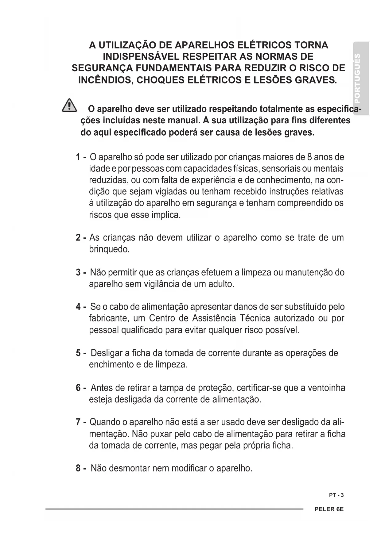 Despejar a água restante no depósito e limpar o mesmo com um pano molhado ou uma escova.PELER 6E PORTUGUÊS PT - 9