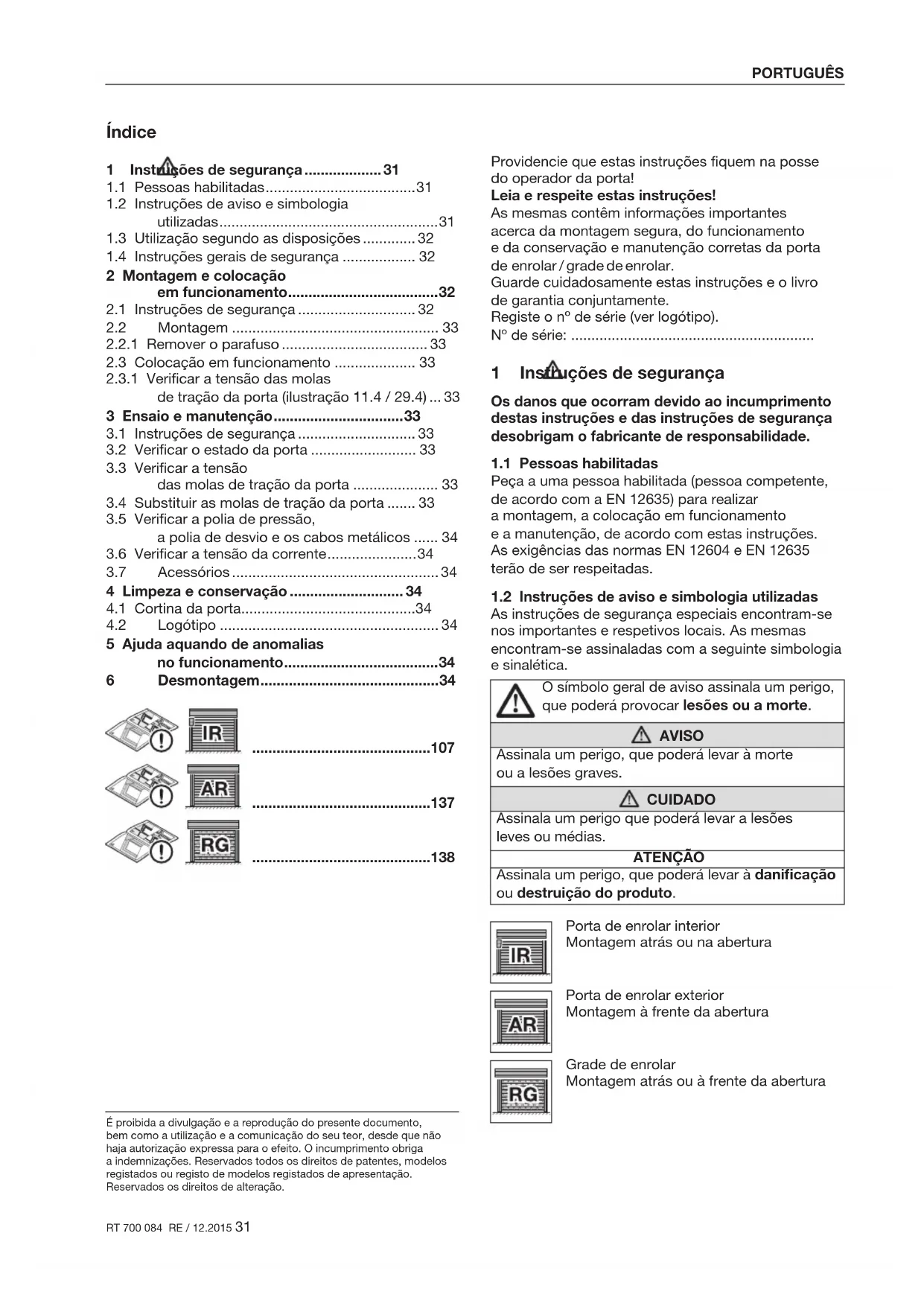 RT 700 084 RE / 12.2015 ITALIANOÍndice 1 Instruções de segurança ................... 31