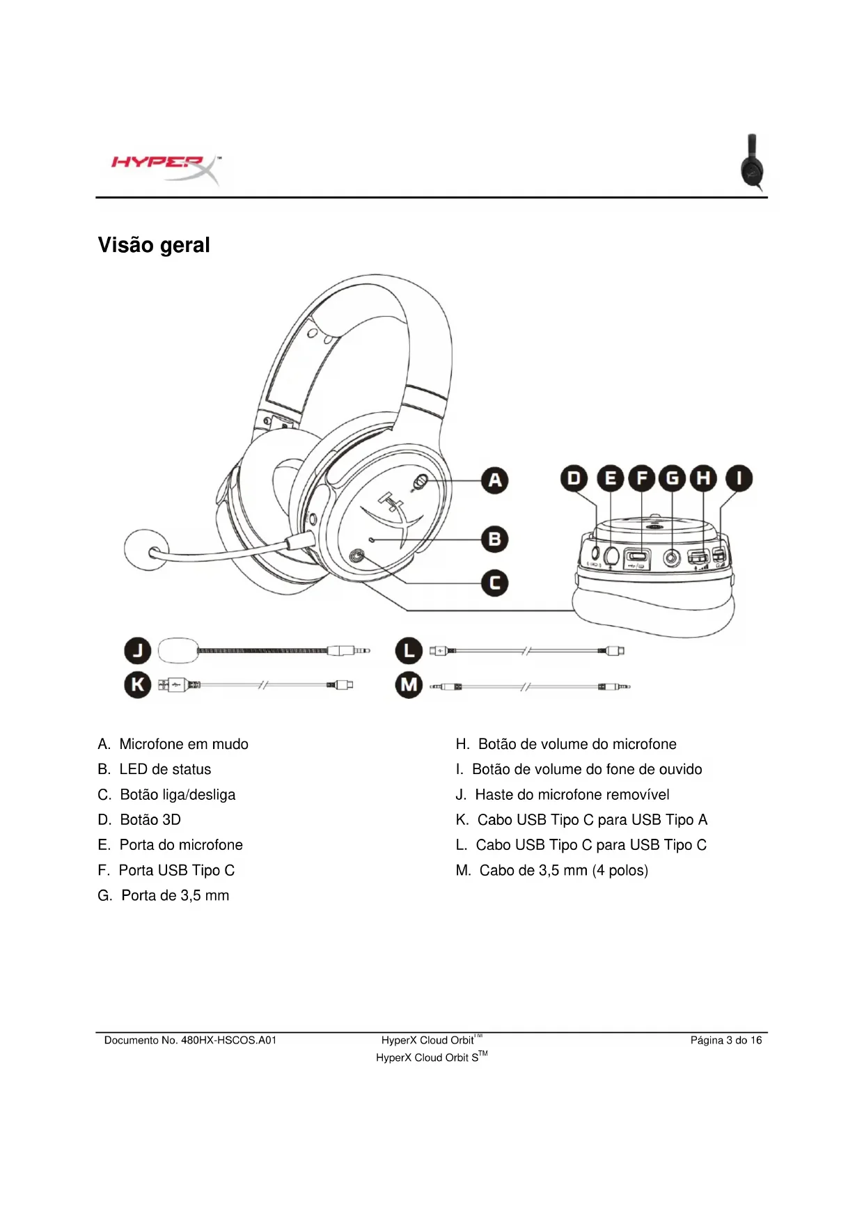 *Disponível apenas no Orbit SDocumento No. 480HX-HSCOS.A01 HyperX Cloud Orbit