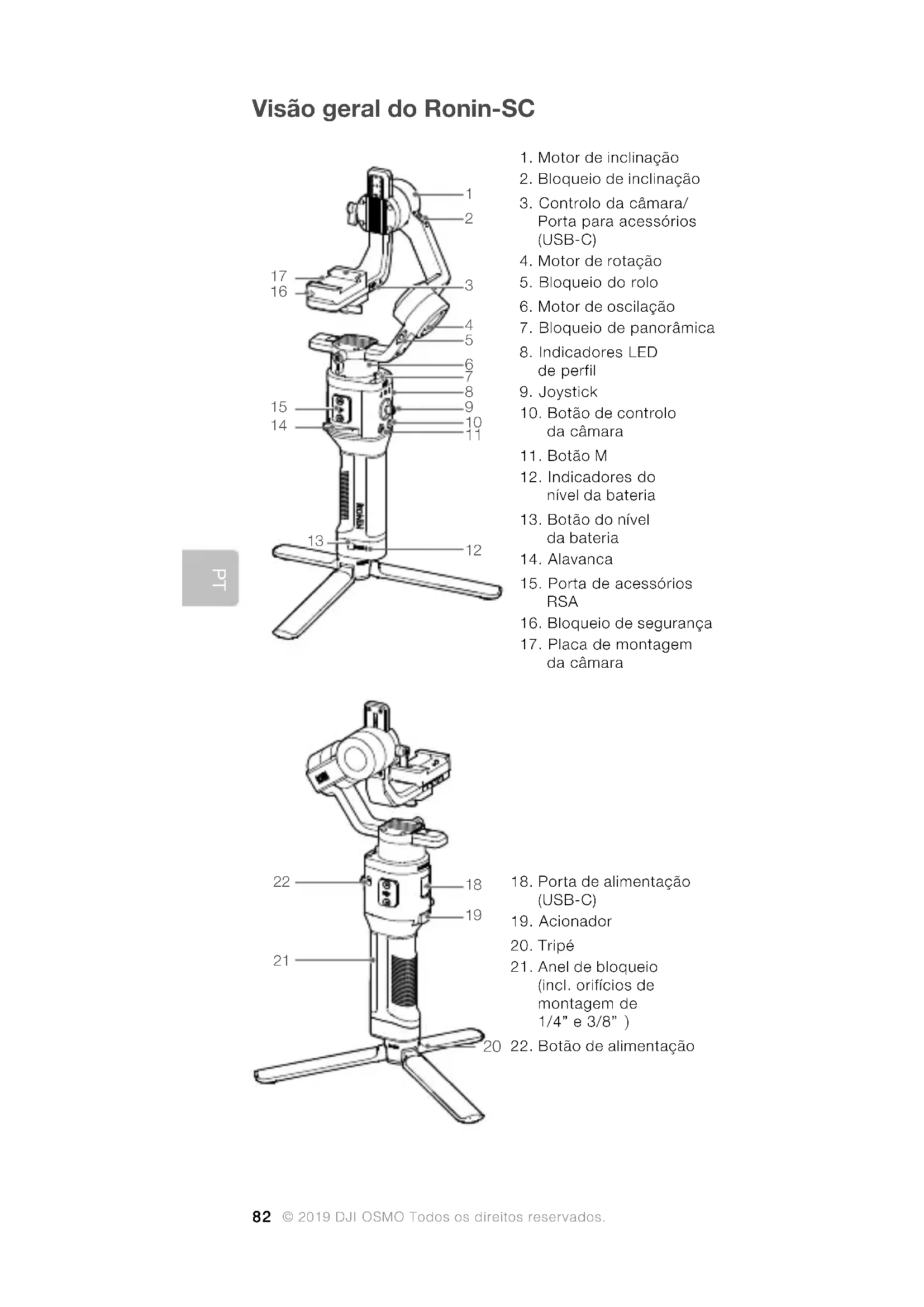 © 2019 DJI OSMO Todos os direitos reservados. Visão geral do Ronin-SC