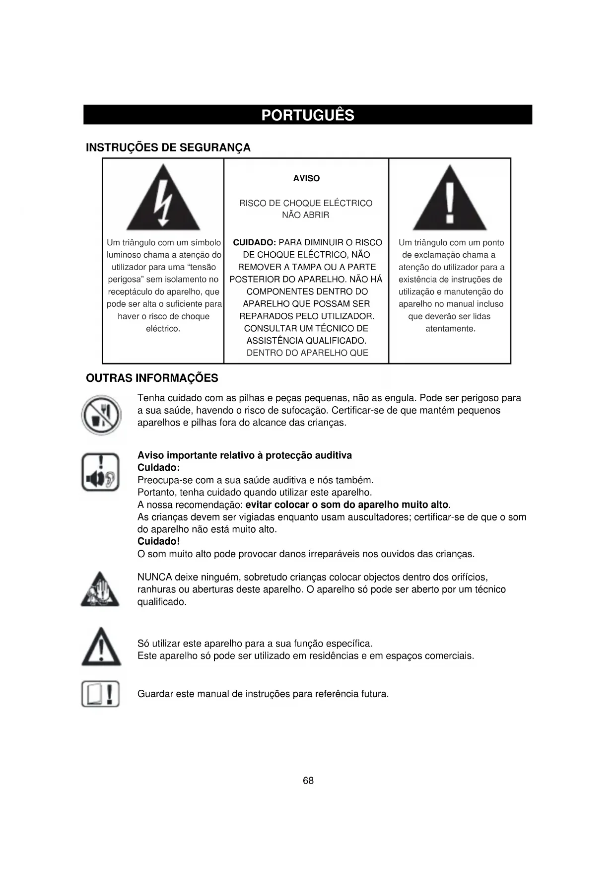 Guardar este manual de instruções para referência futura.69