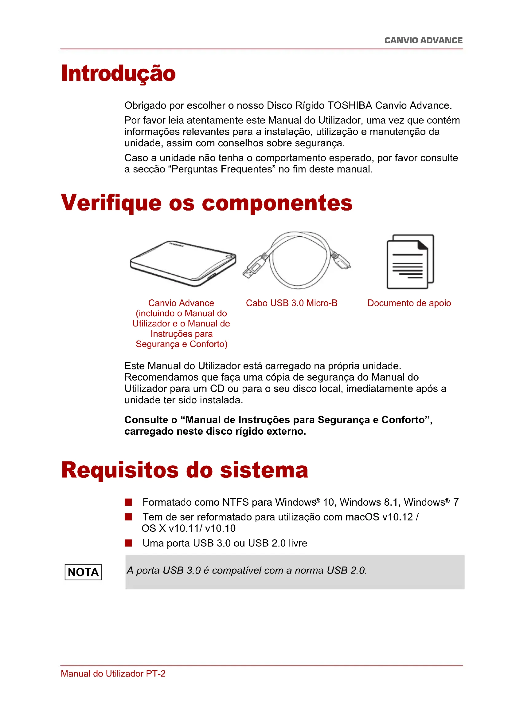 MANUAL DE UTILIZADOR Canvio Advance TOSHIBA