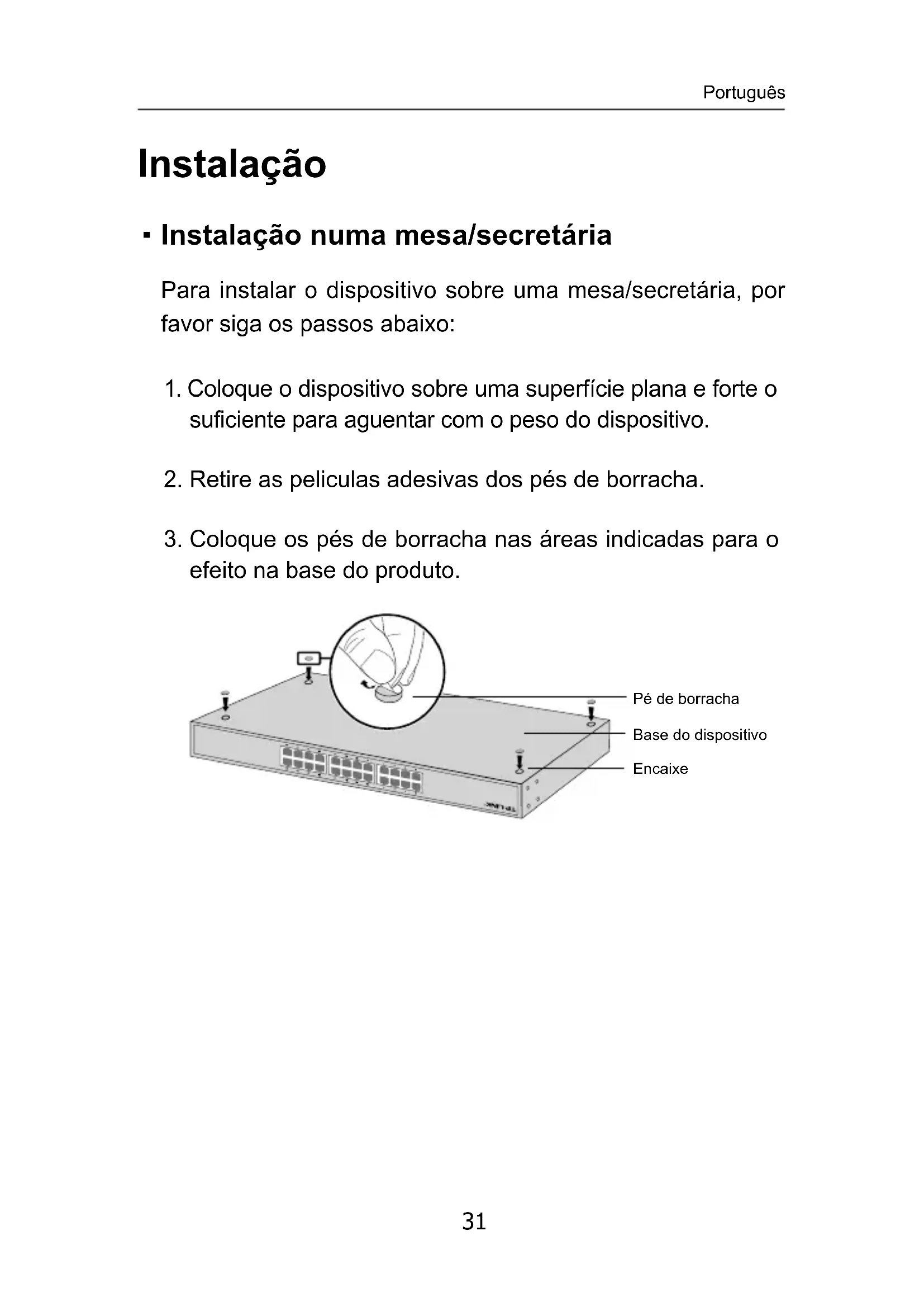efeito na base do produto. Pé de borracha Base do dispositivo Encaixe Português32