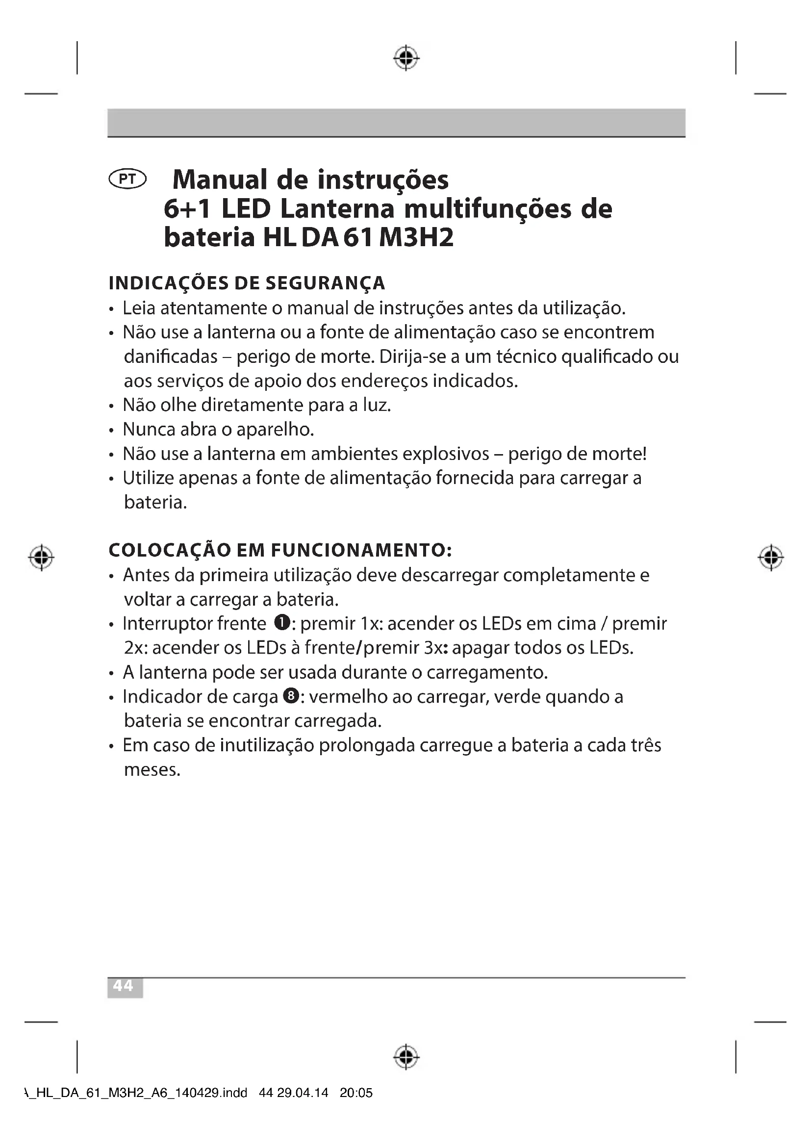 - Em caso de inutilização prolongada carregue a bateria a cada três meses. BA_HL_DA_61_M3H2_A6_140429.indd 44 29.04.14 20:0545