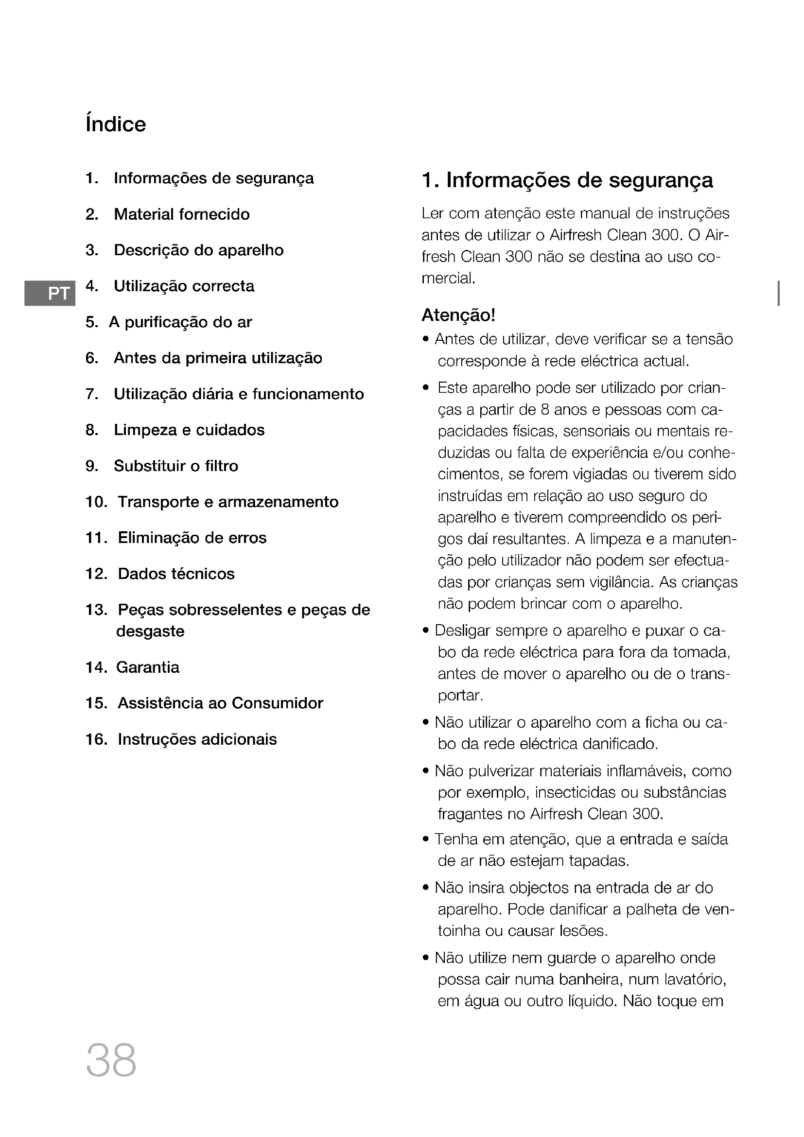 Ler com atenção este manual de instruções antes de utilizar o Airfresh Clean 300. O Air- fresh Clean 300 não se destina ao uso co- mercial. Atenção!