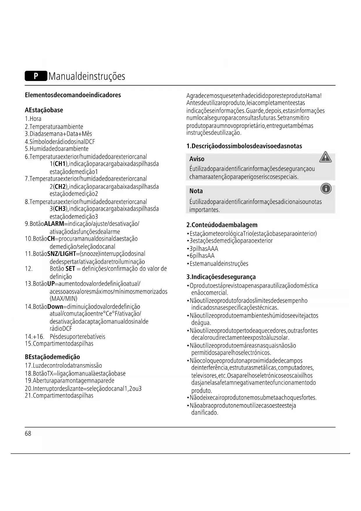 Agradecemos que se tenha decidido por este produto Hama! Antes de utilizar o produto, leia completamente estas indicações e informações. Guarde, depois, estas informações num local seguro para consultas futuras. Se transmitir o produto para um novo proprietário, entregue também as instruções de utilização.