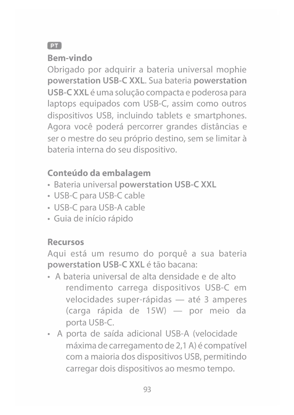 Obrigado por adquirir a bateria universal mophie powerstation USB-C XXL. Sua bateria powerstation USB-C XXL é uma solução compacta e poderosa para laptops equipados com USB-C, assim como outros dispositivos USB, incluindo tablets e smartphones. Agora você poderá percorrer grandes distâncias e ser o mestre do seu próprio destino, sem se limitar à bateria interna do seu dispositivo.