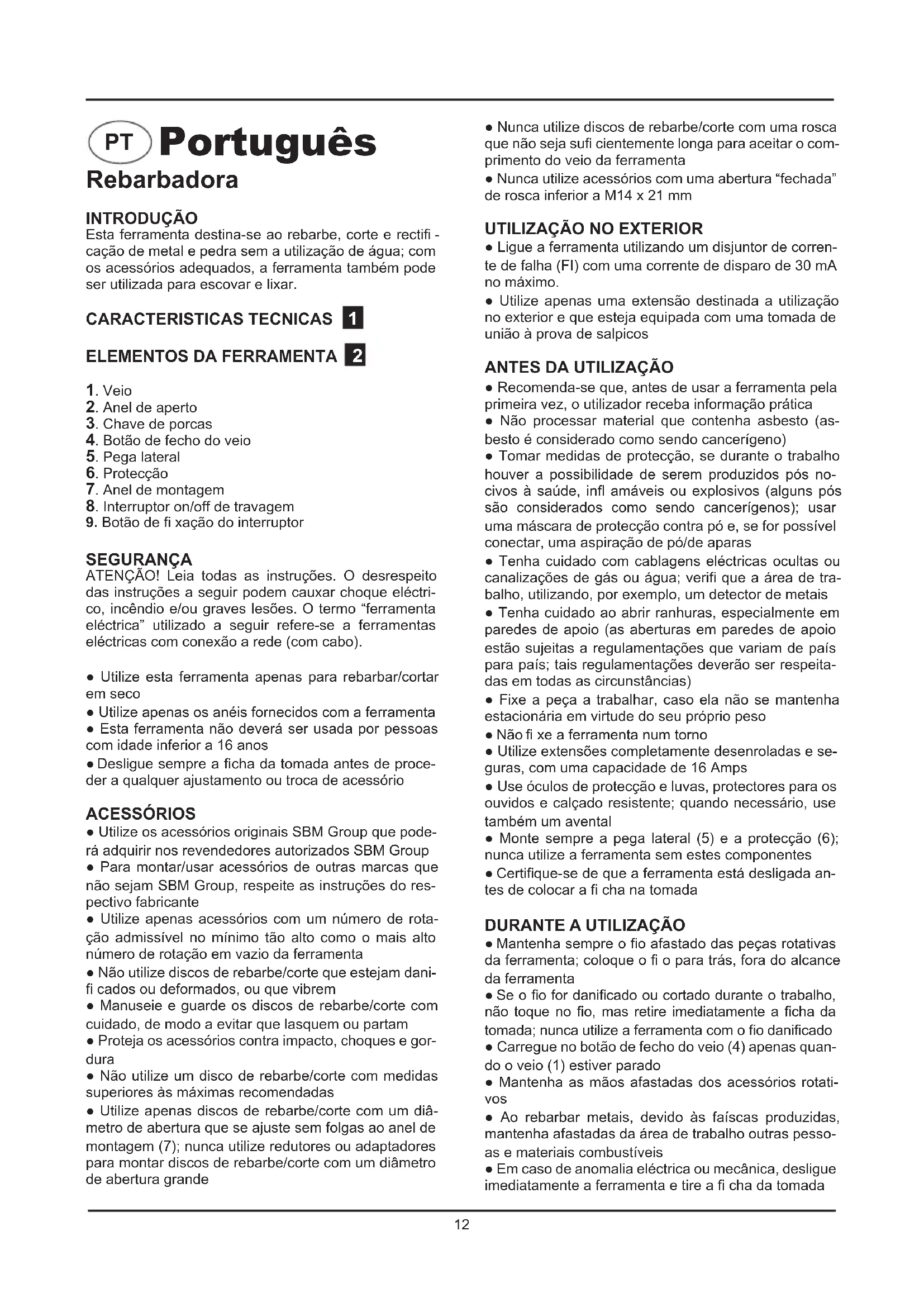 Esta ferramenta destina-se ao rebarbe, corte e rectificação de metal e pedra sem a utilização de água; com os acessórios adequados, a ferramenta também pode ser utilizada para escovar e lixar.