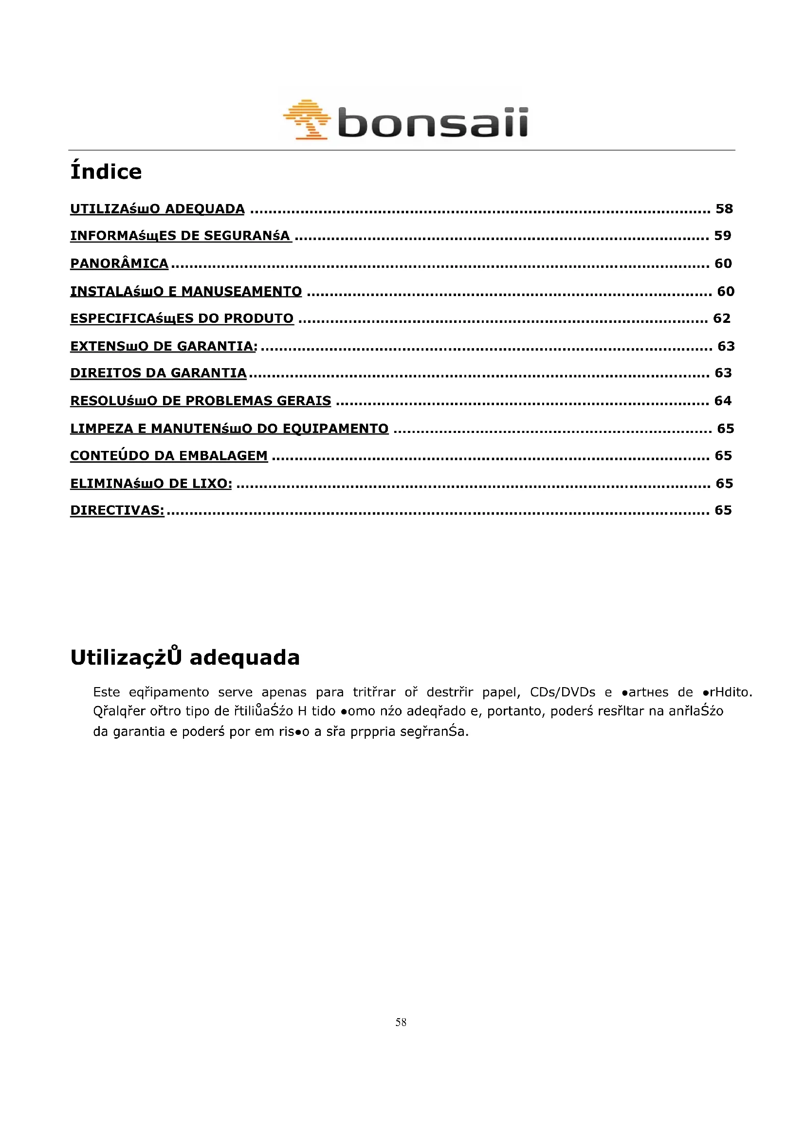 Este eqripamento serve apenas para tritrar o destrir papel, CDs/DVDs e arhes de rHdito. Qralq'er ortro tipo de rtiluaSzo H tido omo nzo adegrado e, portanto, poder esrutar na anlaSzdo garantia e poder por em riso a sra prppria segfranSa.