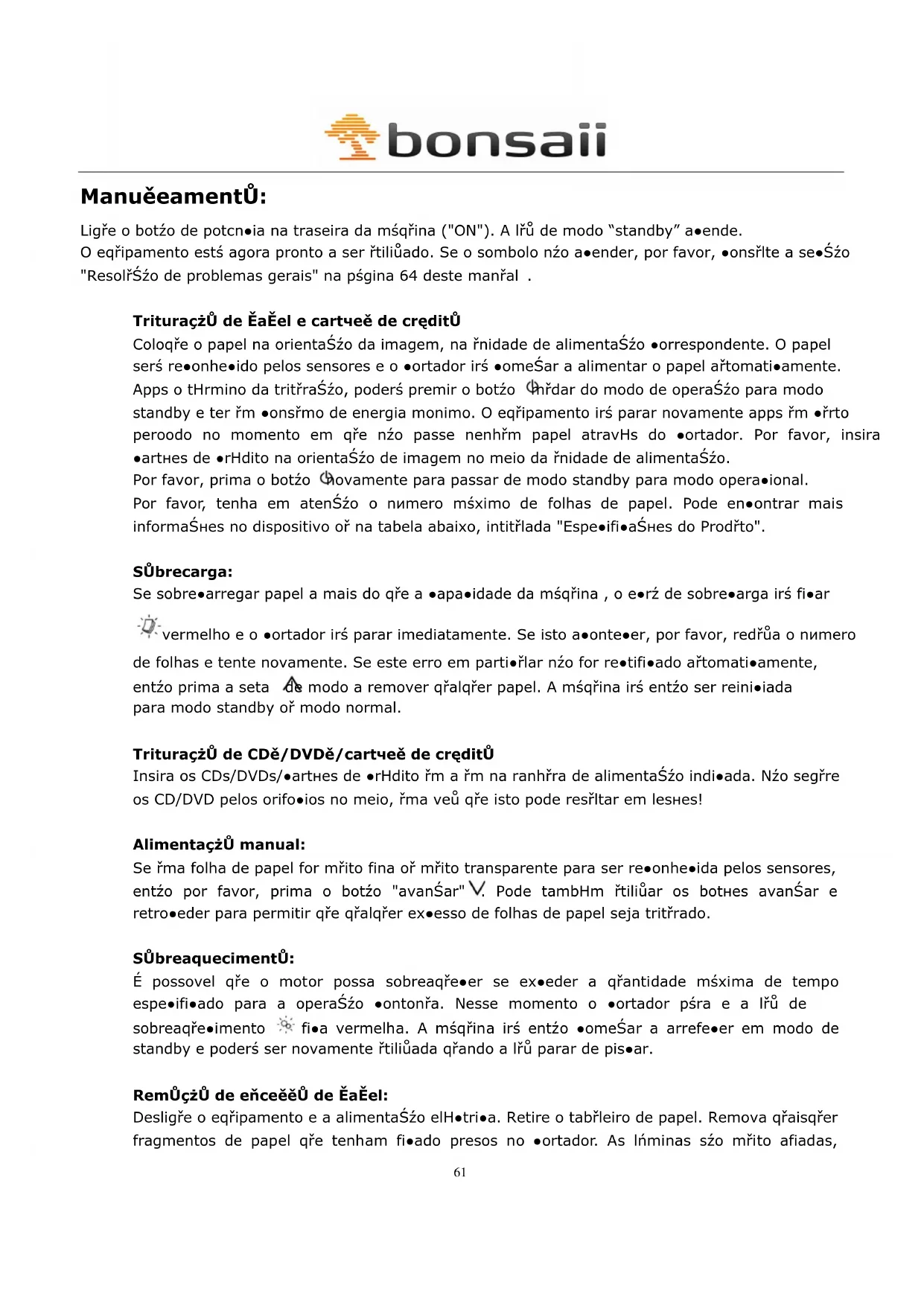 4S16 - Fragmentadora de papel Bonsaii - Manual de utilização gratuito