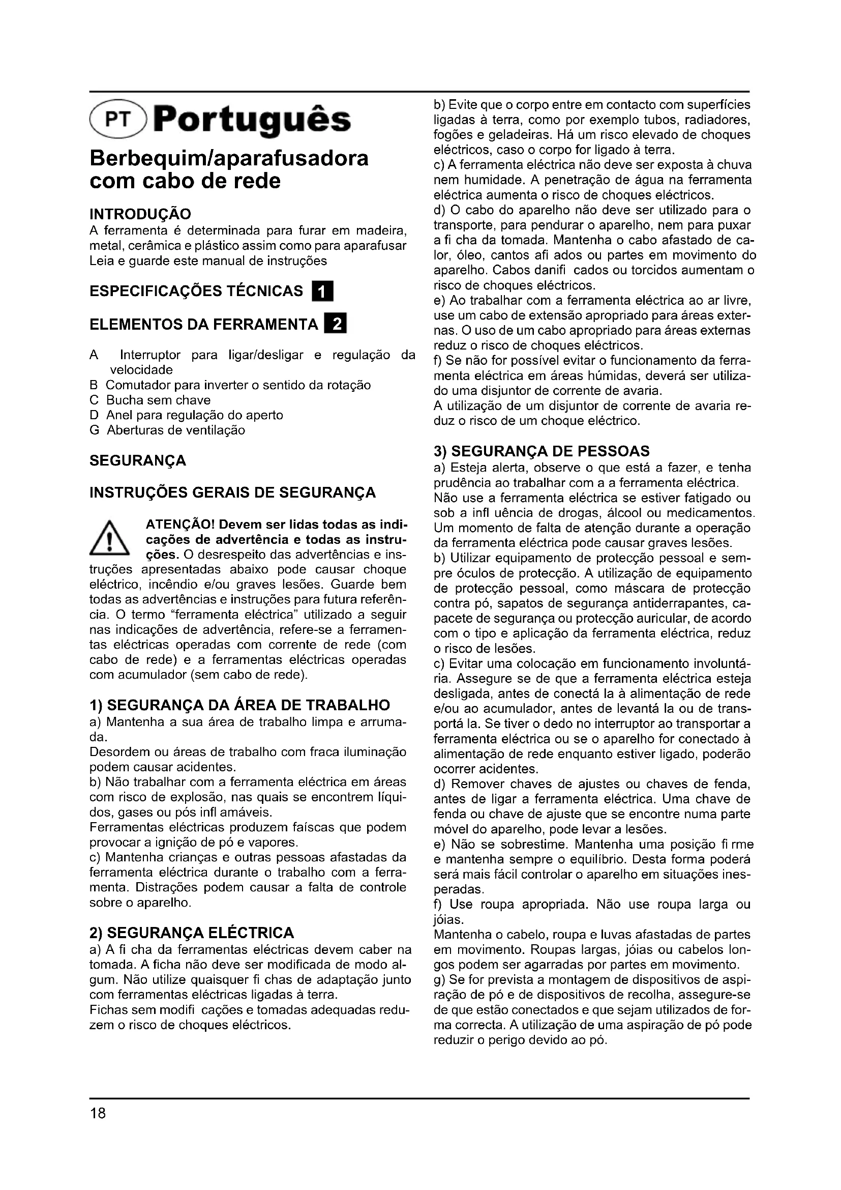 INSTRUÇÕES DE SEGURANÇA PARA APARAFUSADORAS/BERBEQUIMS